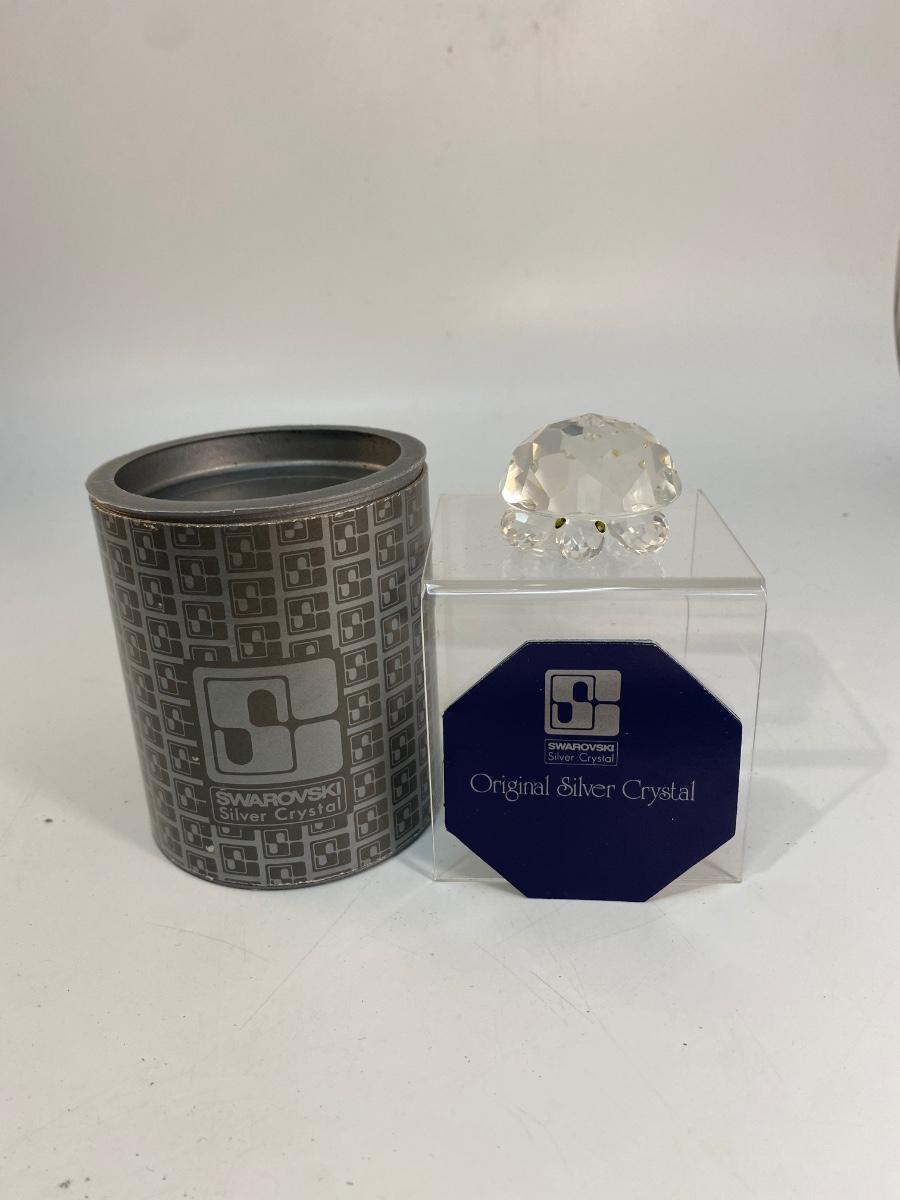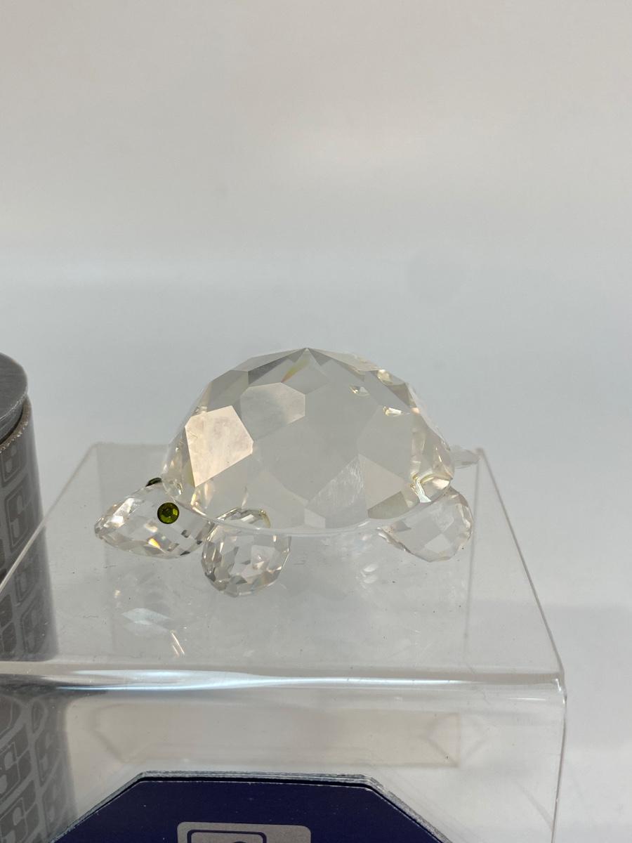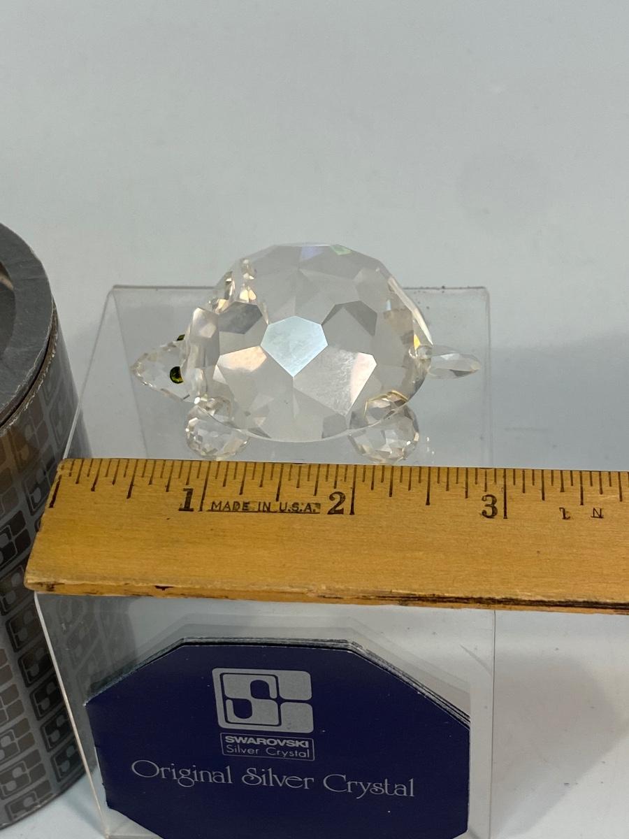 Swarovski Crystal Turtle Tortoise Figurine with Box. In good condition. About 2" size. Stamped on shell near tail.