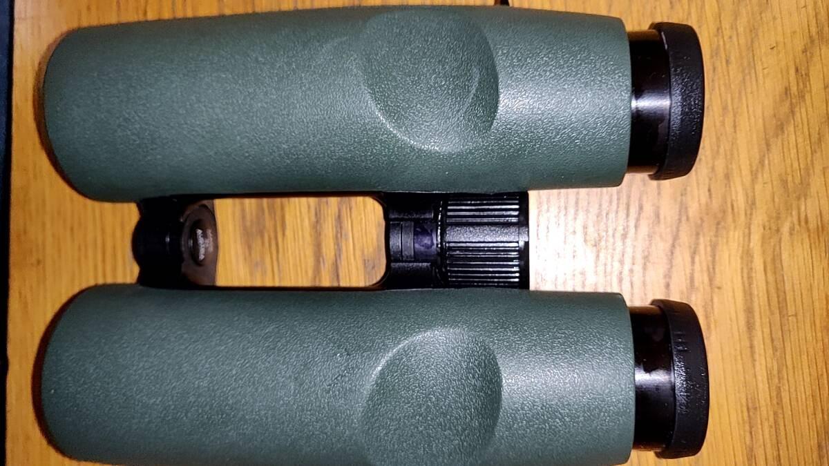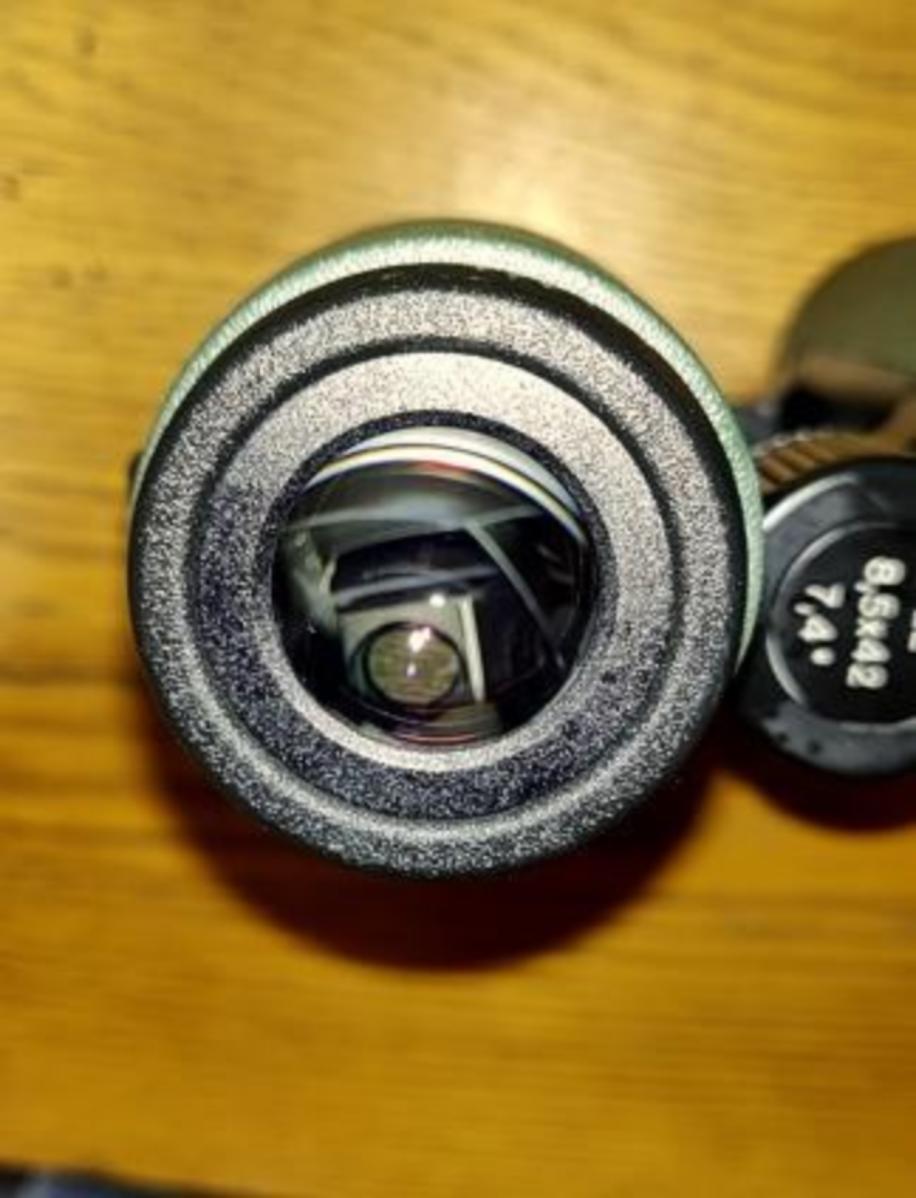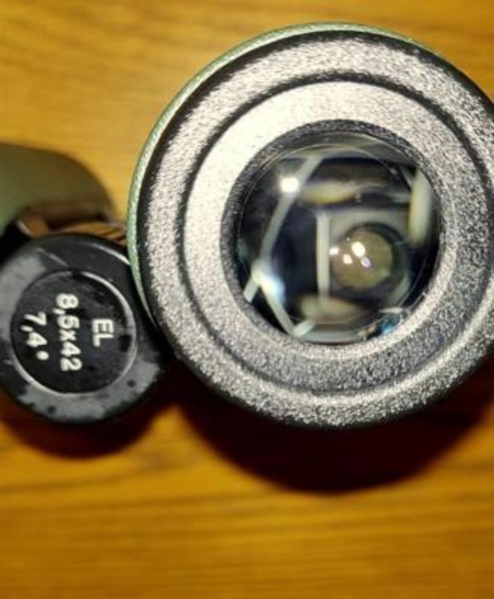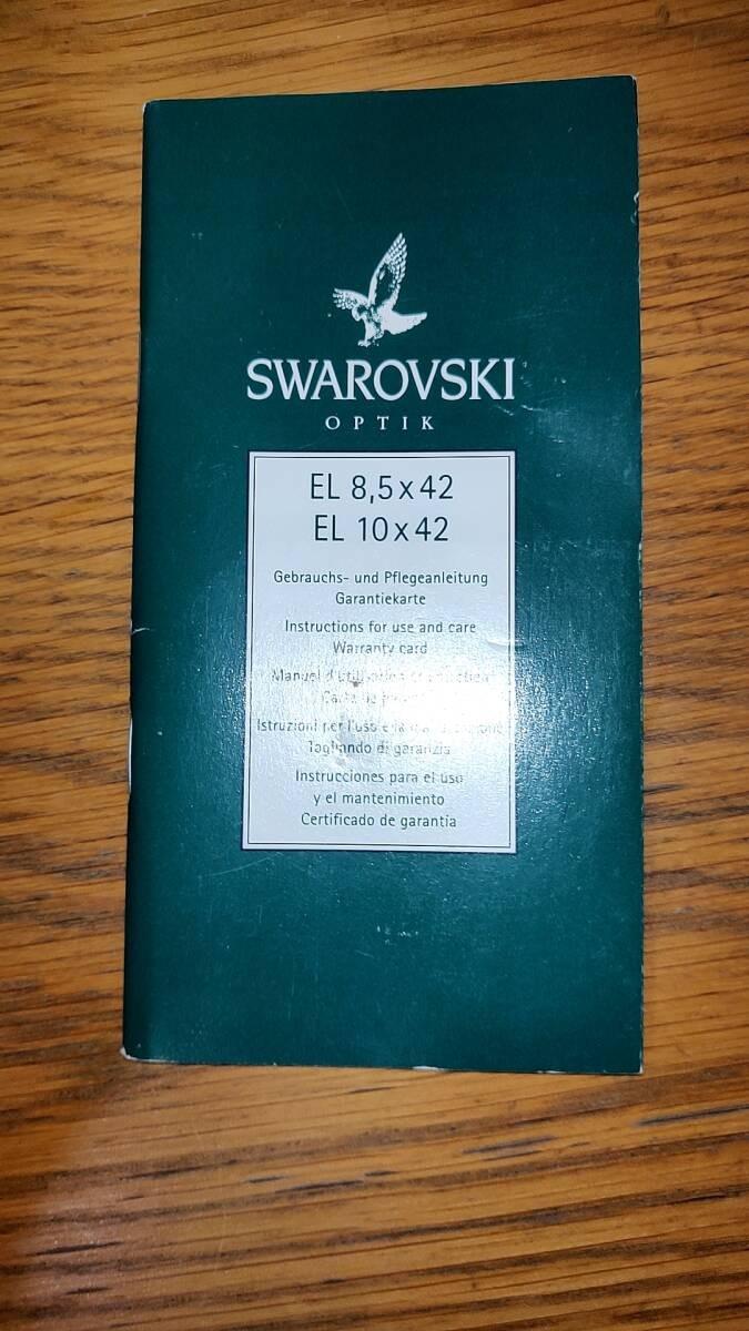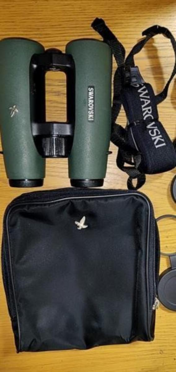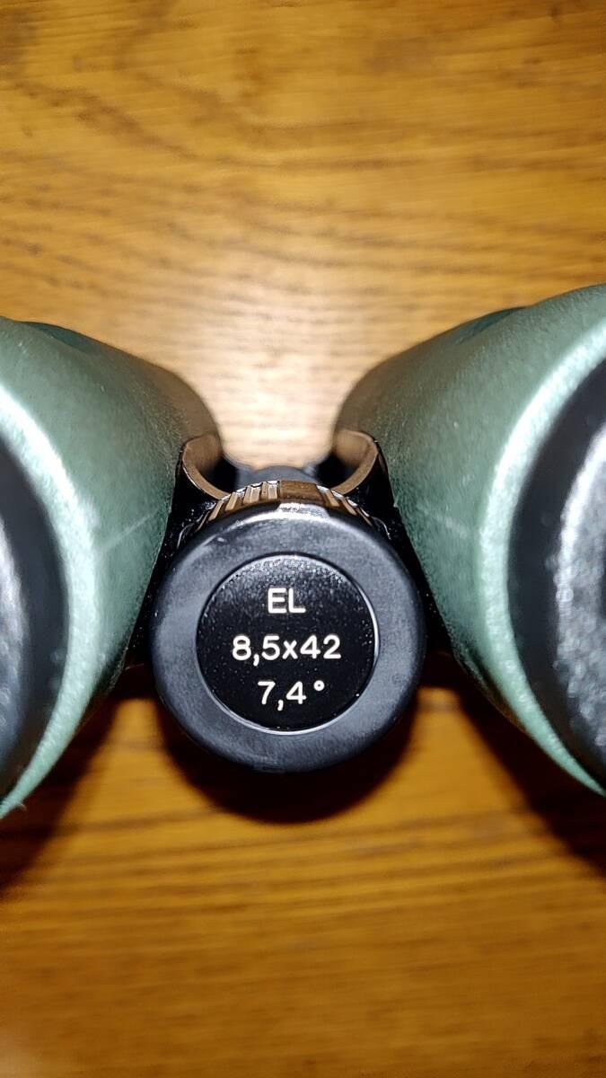 Swarovski binoculars EL 8.5x42 7.6deg. The exterior of the body has minor scuffs, but no cracks or breaks.The eyepiece lens cap is deteriorated and the area around the logo is peeling off.There is a small amount of dust on the optics, but it does not affect the use of the lens.No fogging, mold, or scratches.Operation is normal.Includes eyepiece cap, objective lens cap, case, booklet, and strap.