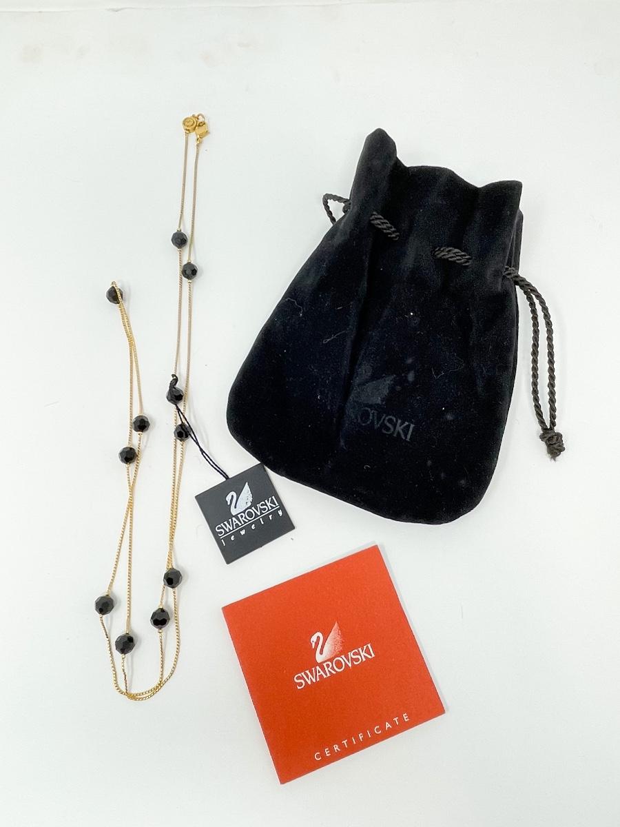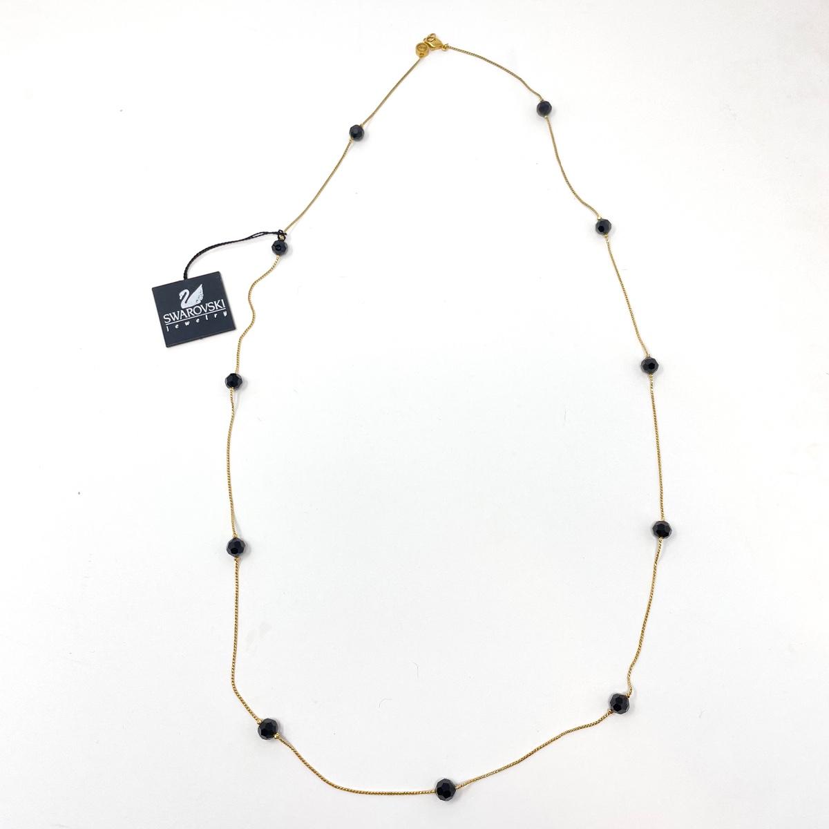 SWAROVSKI GOLD-TONED AND BLACK BEADED NECKLACE