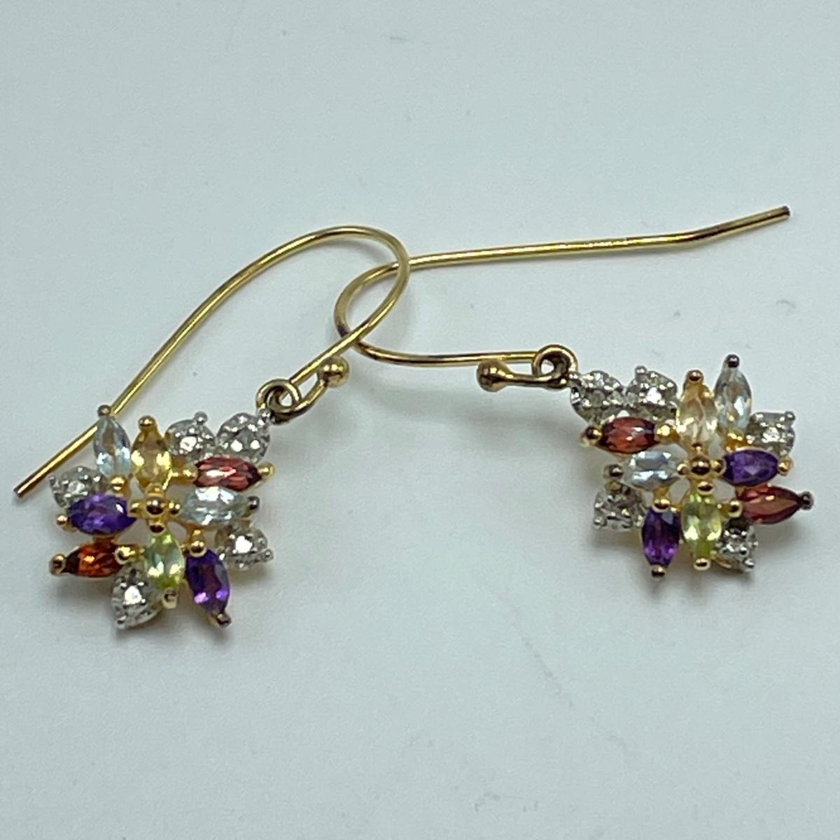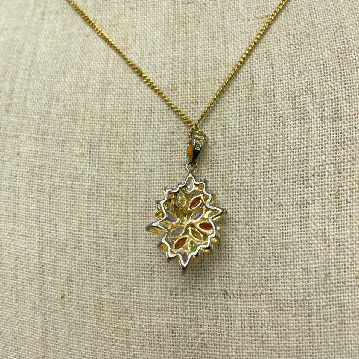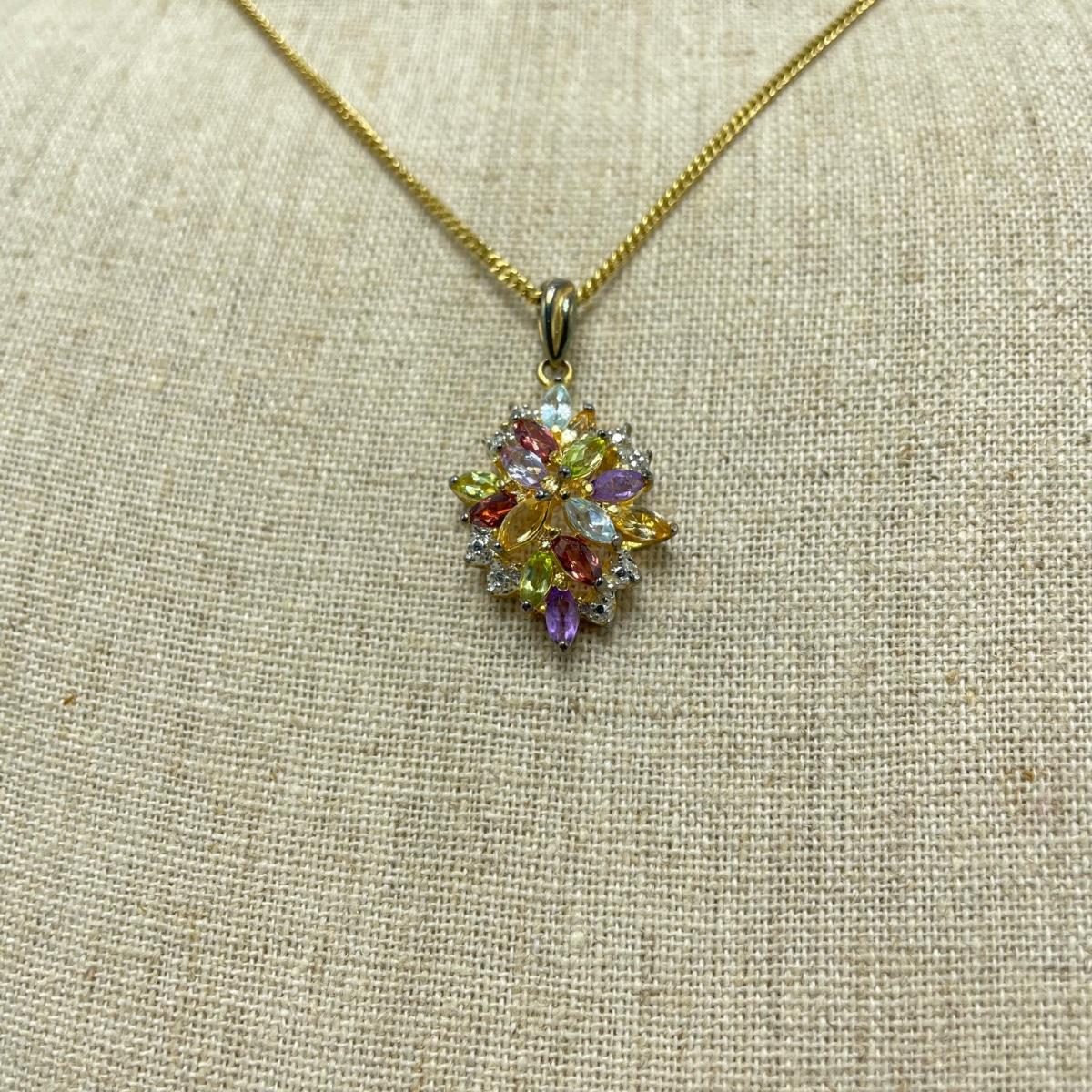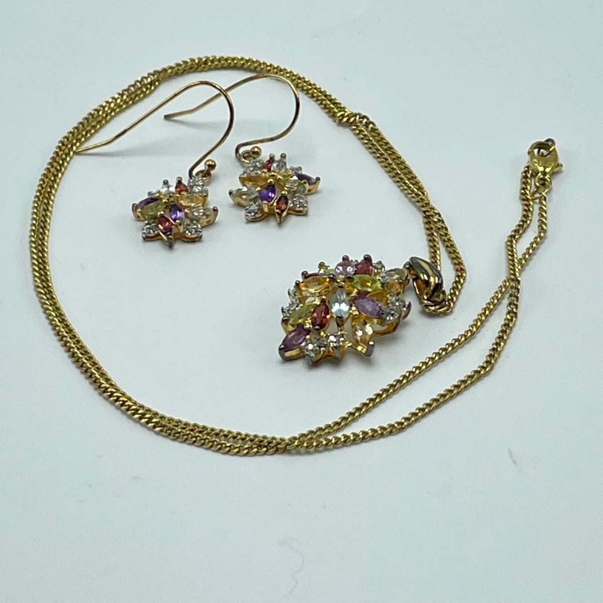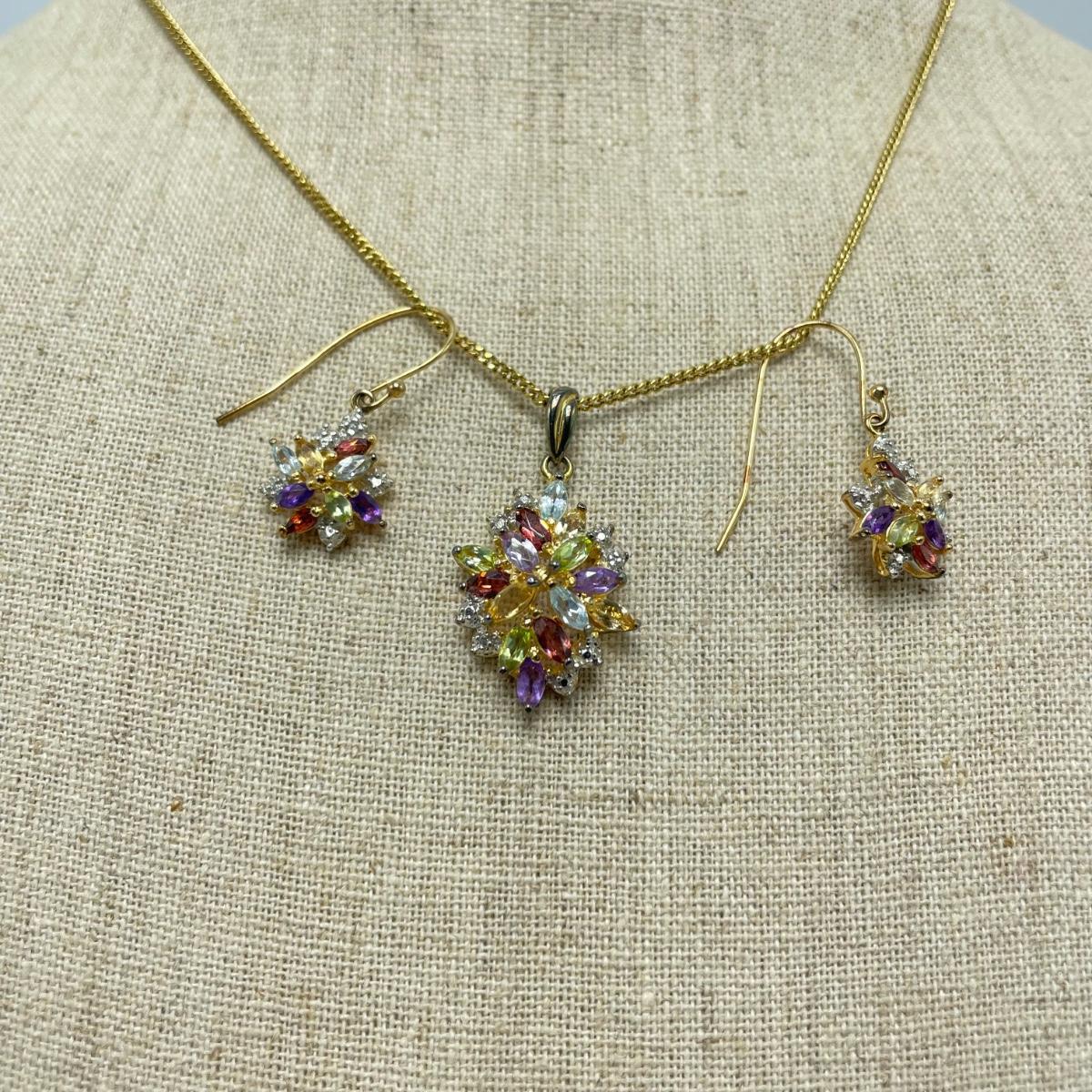Stunning pendant and earring set with multicolored gems sparkling throughout. Earrings and pendant are marked '925'. The pendant also has another marking that appears to be the Swarovski swan and "China". The 20” chain also has what appears to be the Swarovski’s swan. See images. Shipping available. All sales are final. No returns or refunds. Please bid accordingly.