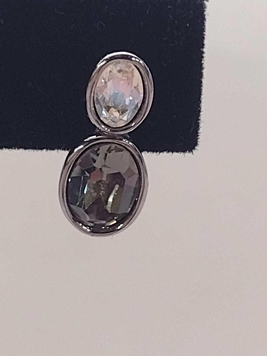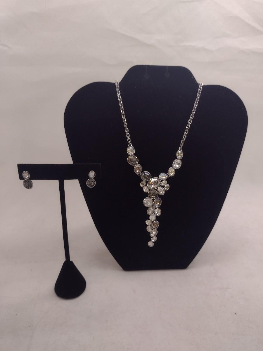 Swarovski Necklace and Earring Set (#22). Clear and smoke colored crystals. Necklace measures approx 17 ½" long.