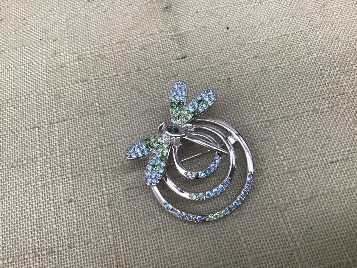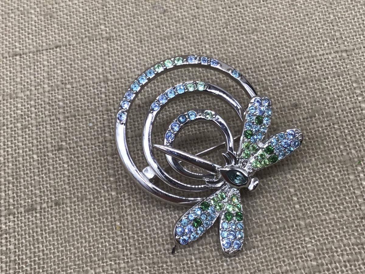 Swarovski Swan Signed Silver Tone Multi-Colors Crystals Dragonfly Brooch