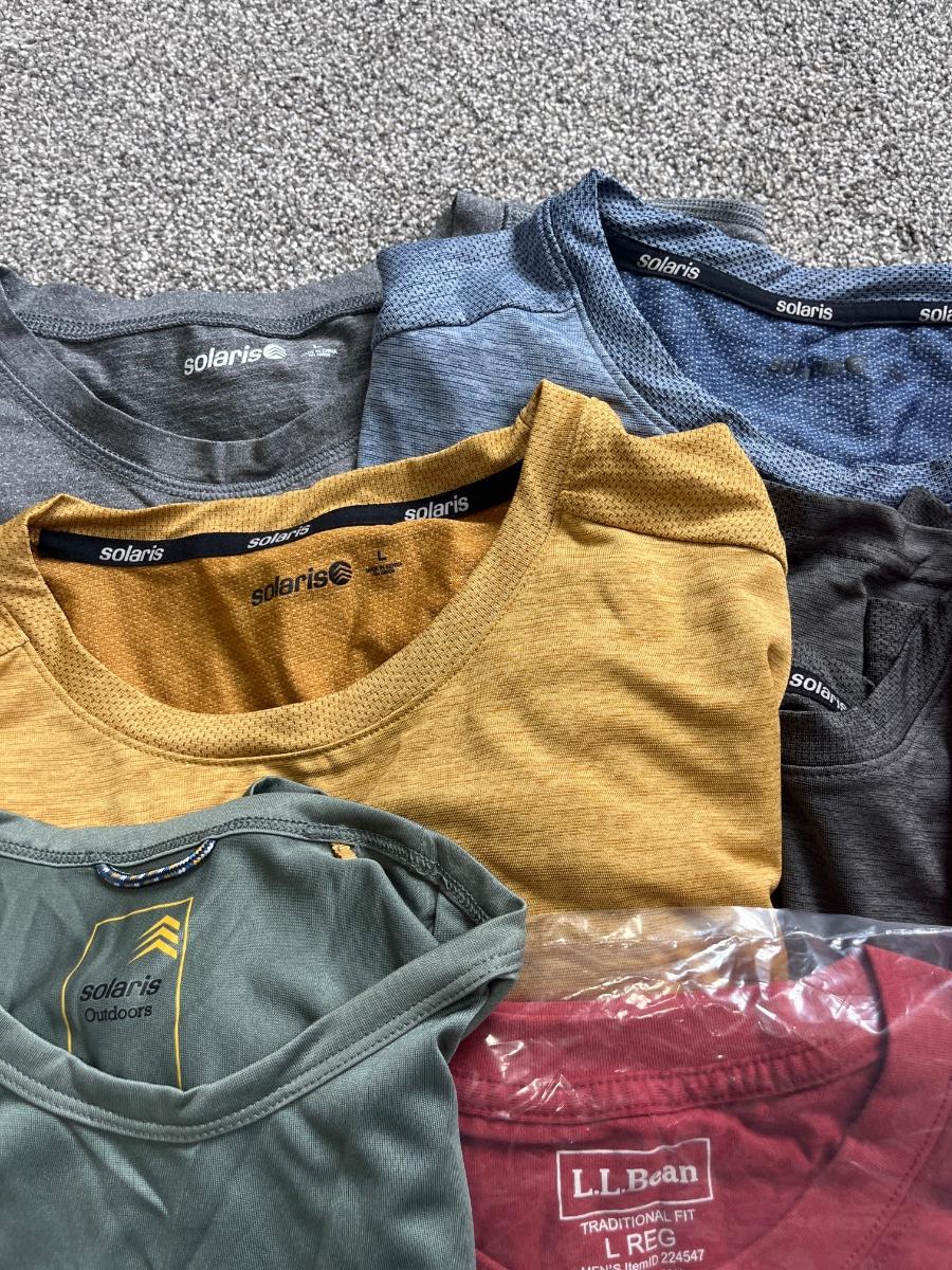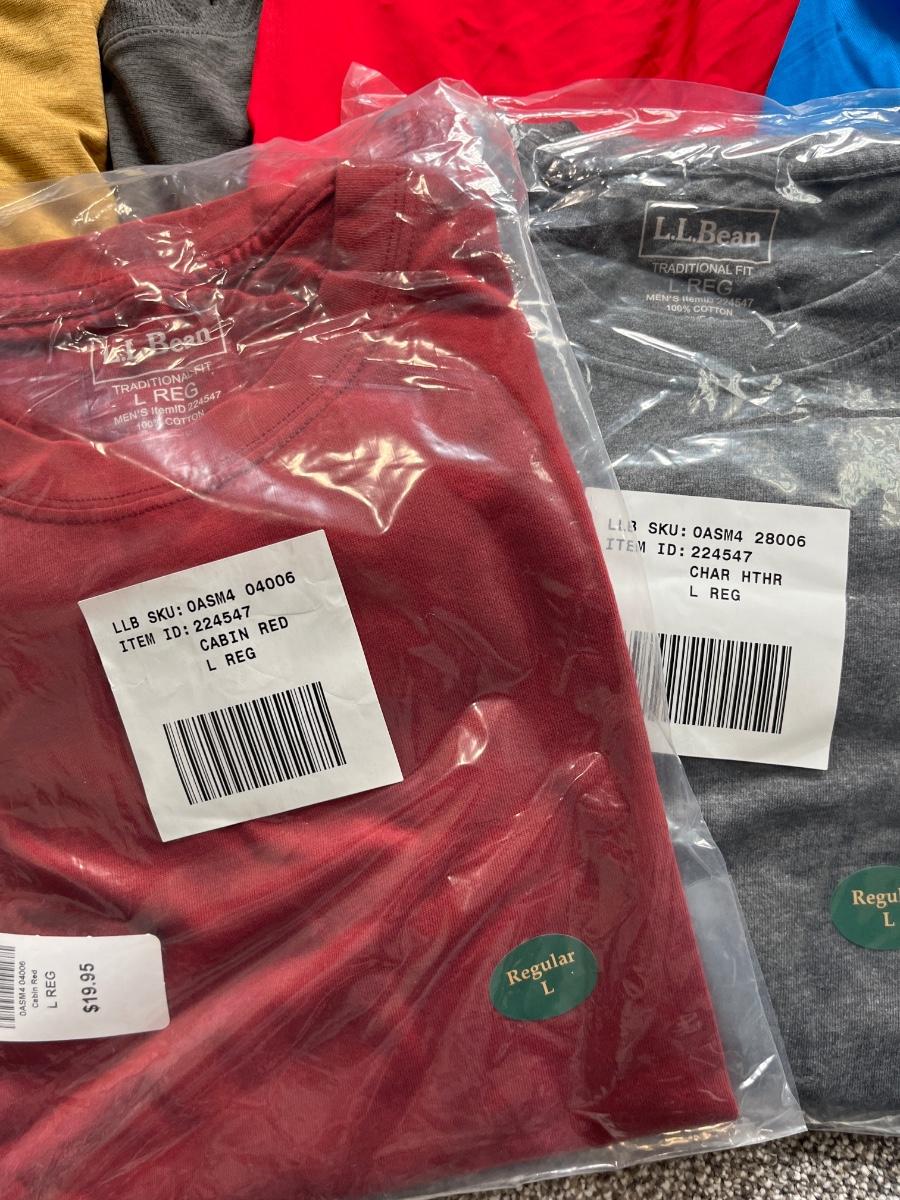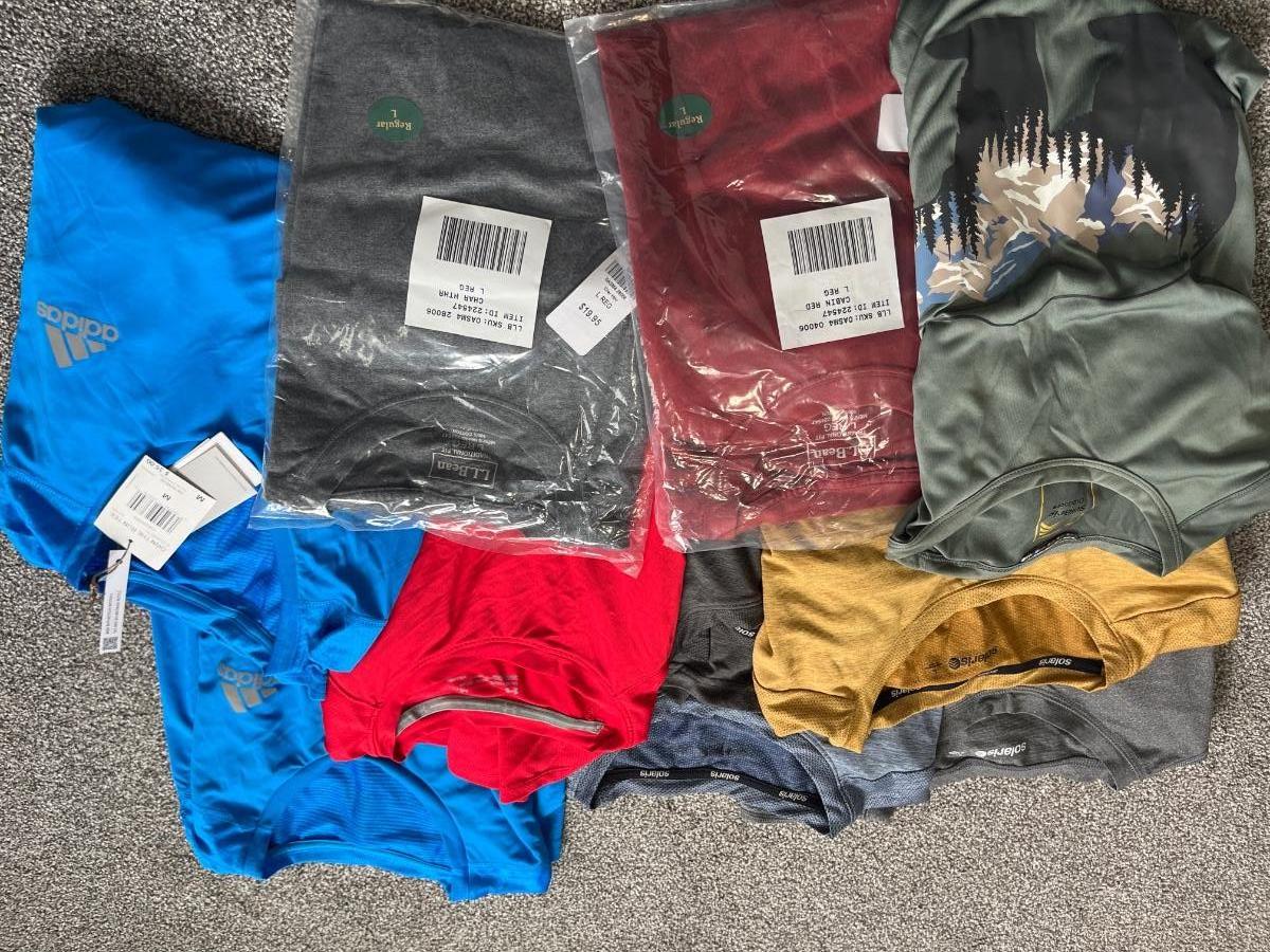 L.L. Bean are brand new and package as is Adidas. Sizes very from medium to large.