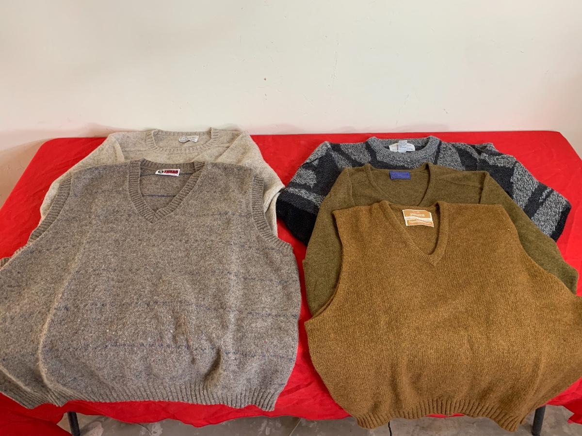 Assortment of mens sweaters in including brands like Pendleton, limited editions, Jantzen, Arrow brigade and Tuxan. All in good to great condition.