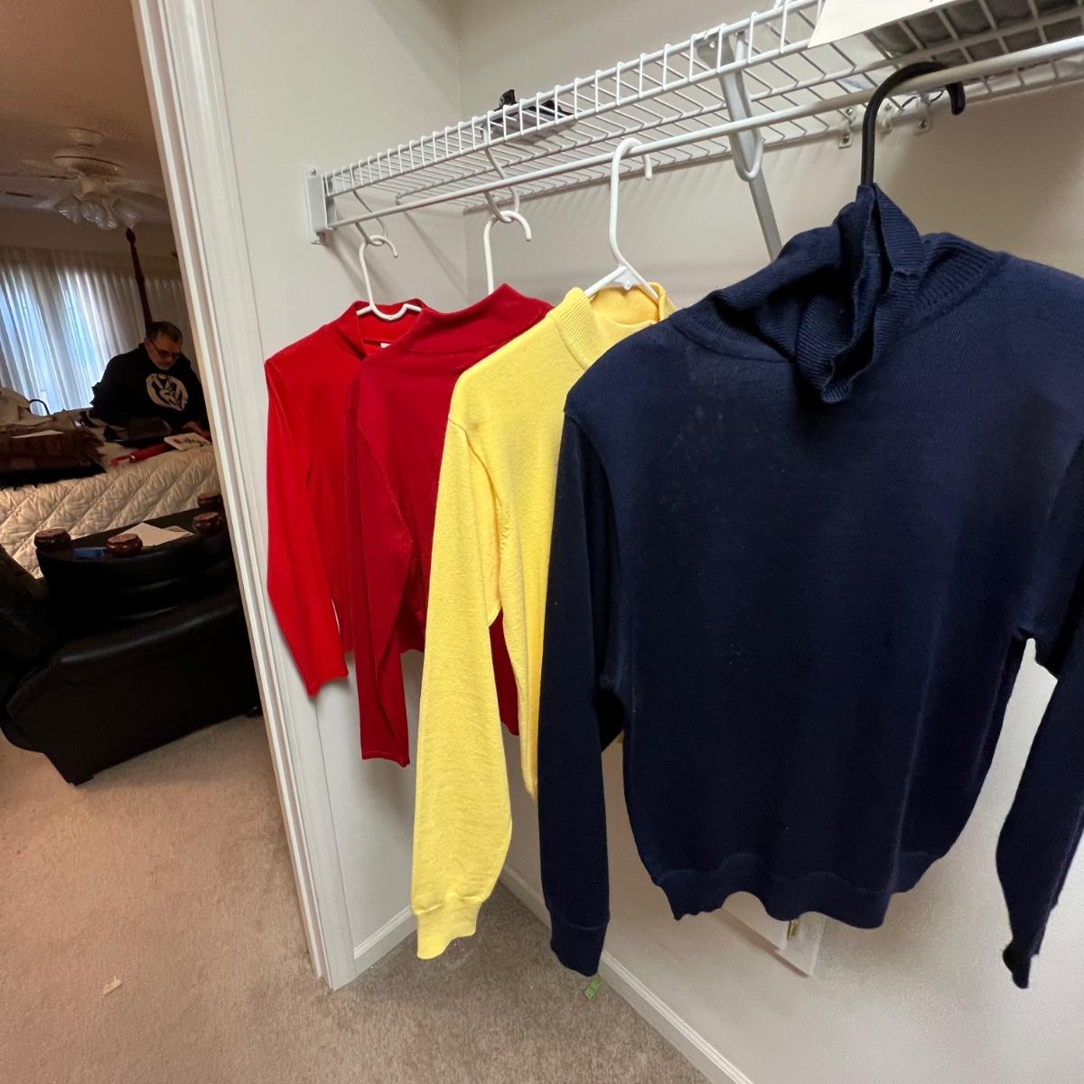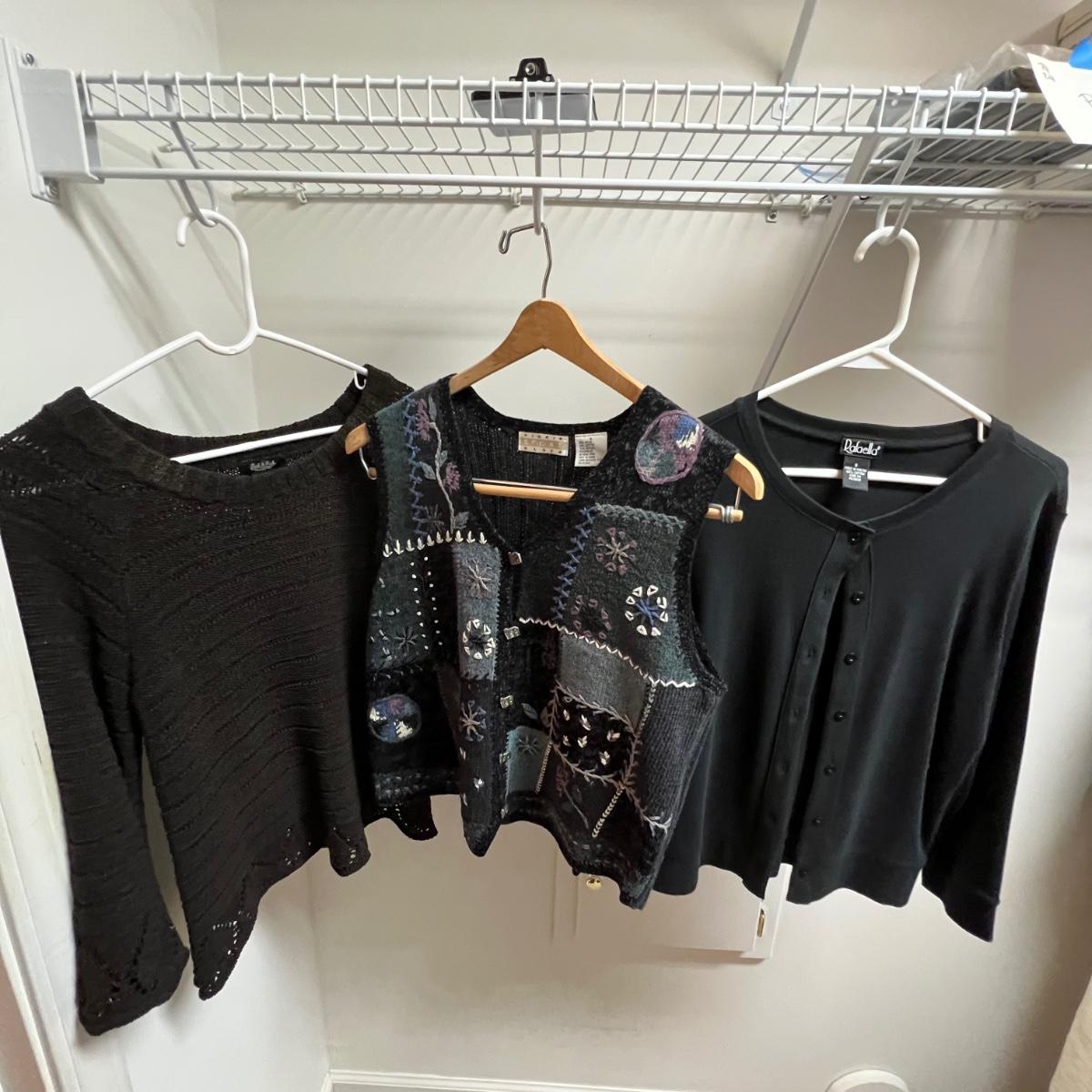 From lightweight to a heavier 100% wool Eddie Bauer, this lot has plenty of options. See images for sizes and brands. Note the Lands End tag needs a couple of stitches to reattach one end of the tag.