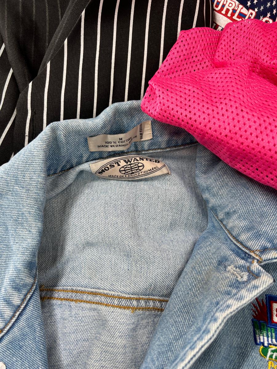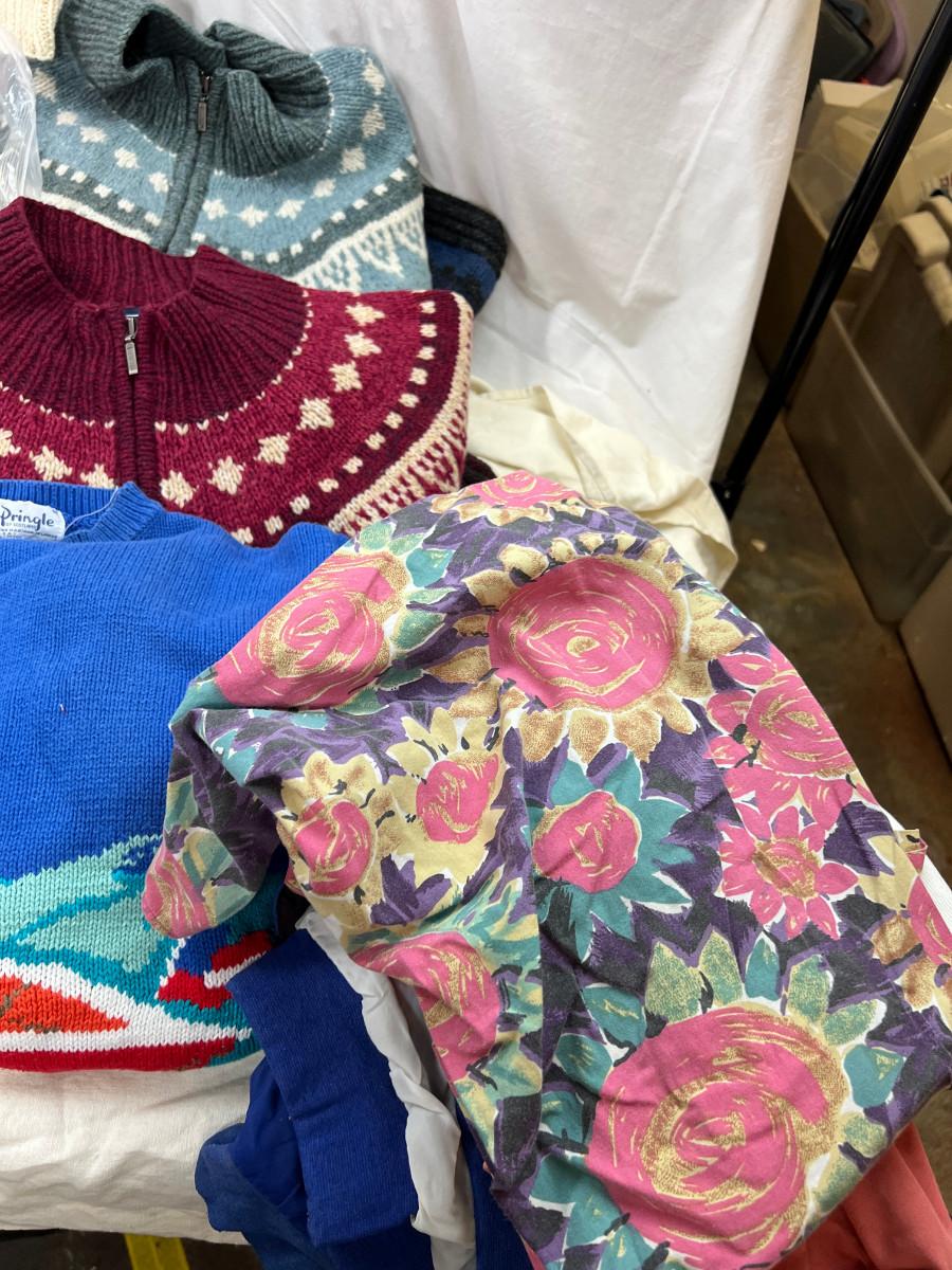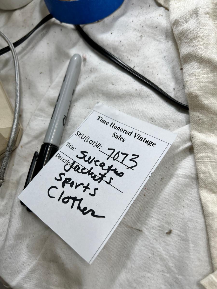 Nike athletic gear, Lands end Nordic sweaters, LS 1980s chain jacket black and white stripe.Elephant hand made sweater.