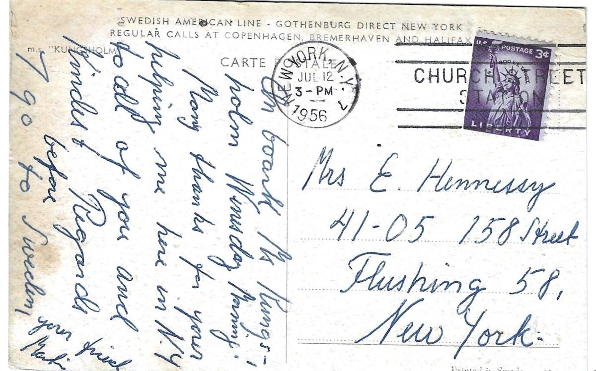 Swedish American Line Ship posted in 1956