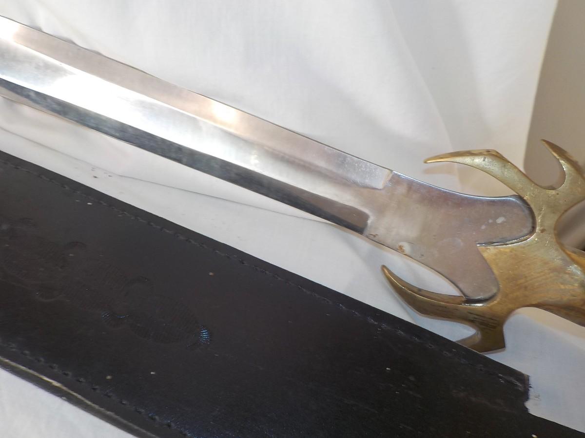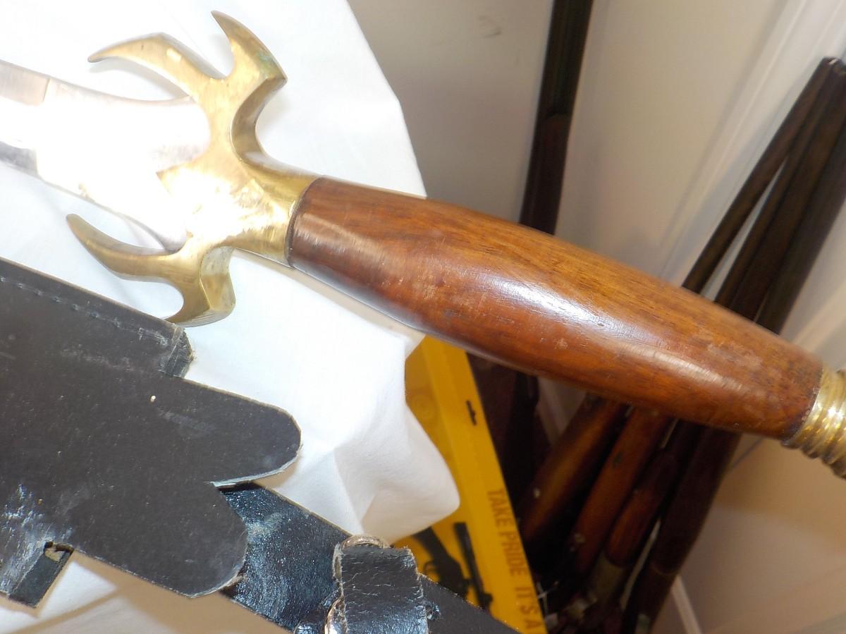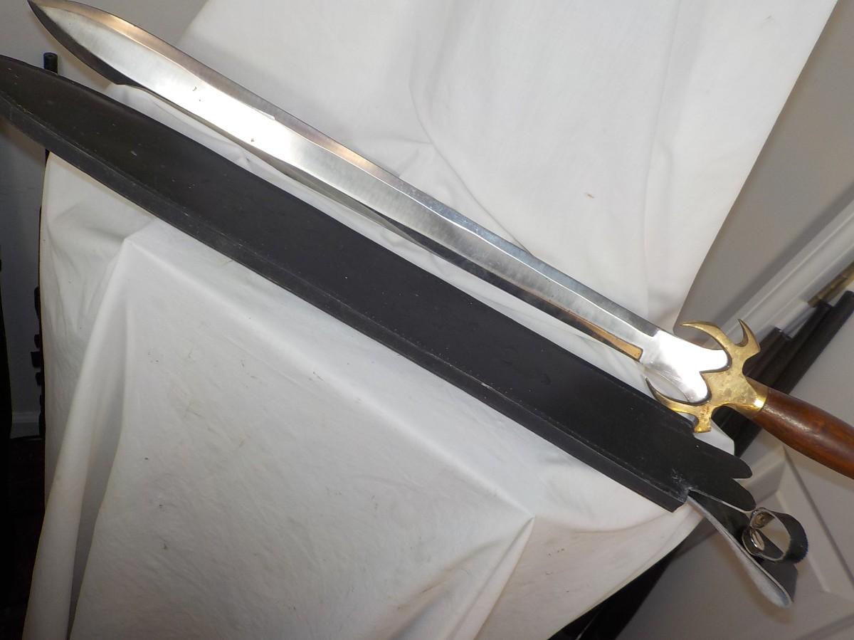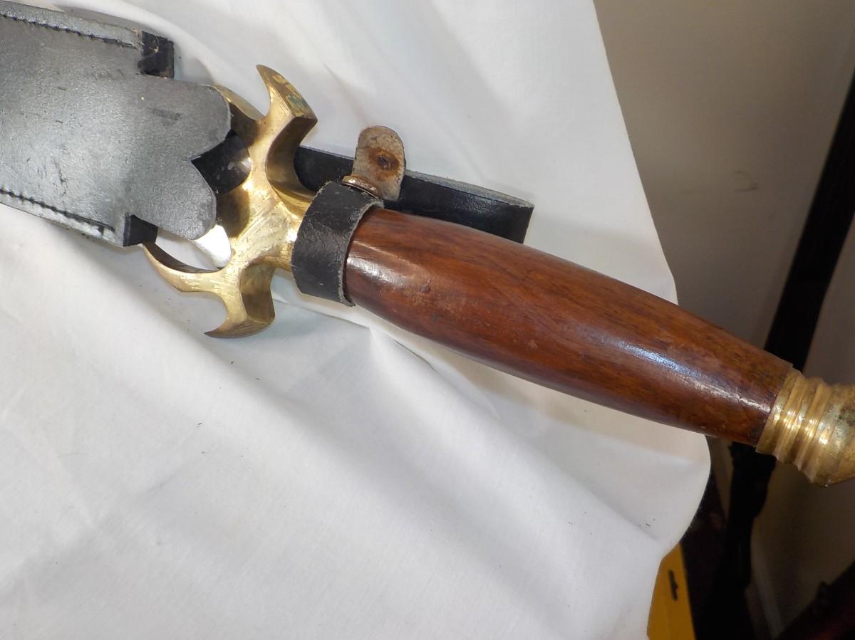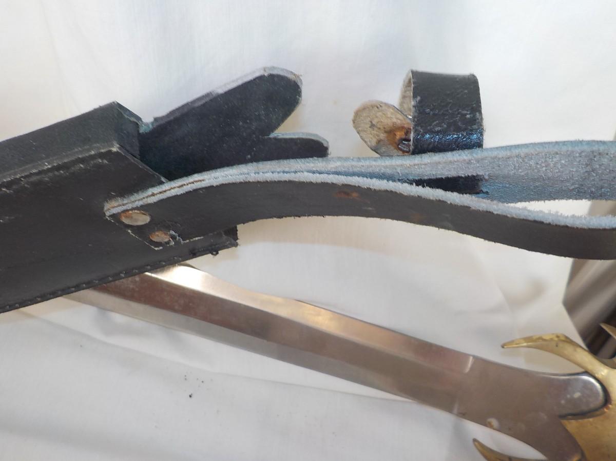 Swedish Armor sword approx. 26 in. with leather scabbard. est. $50 to $130..