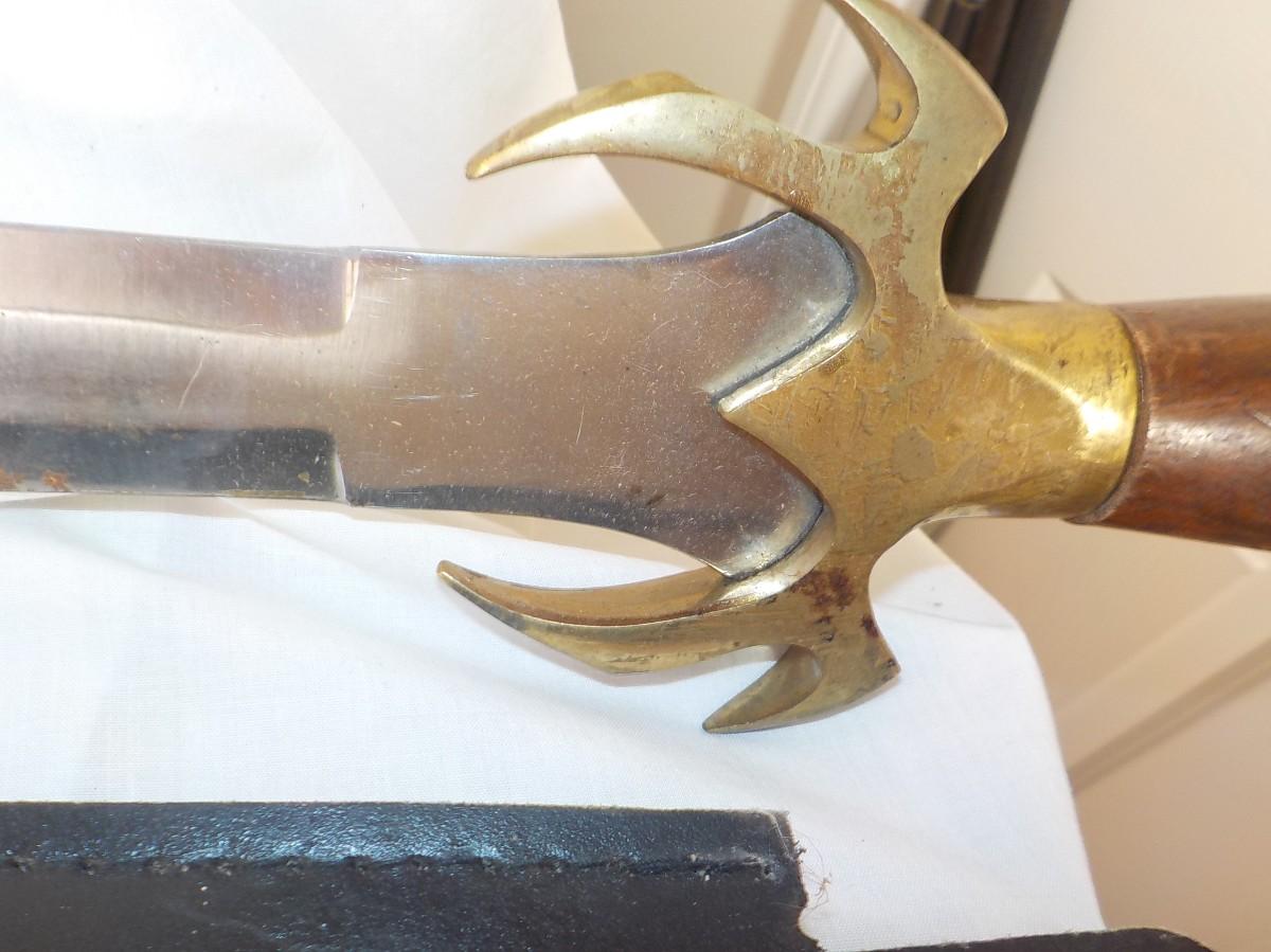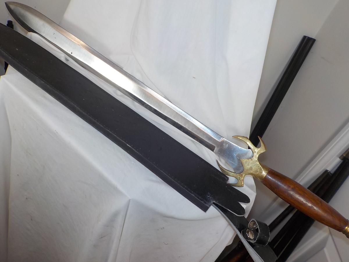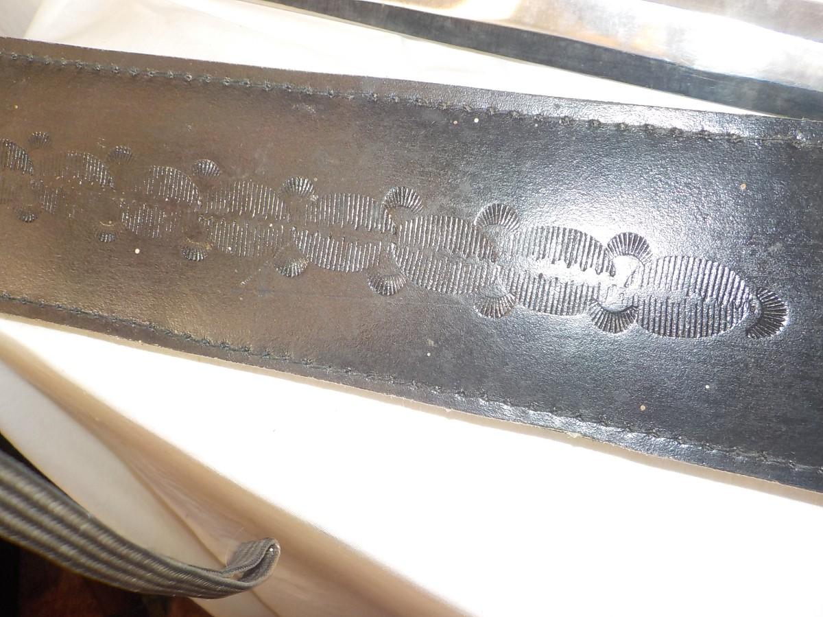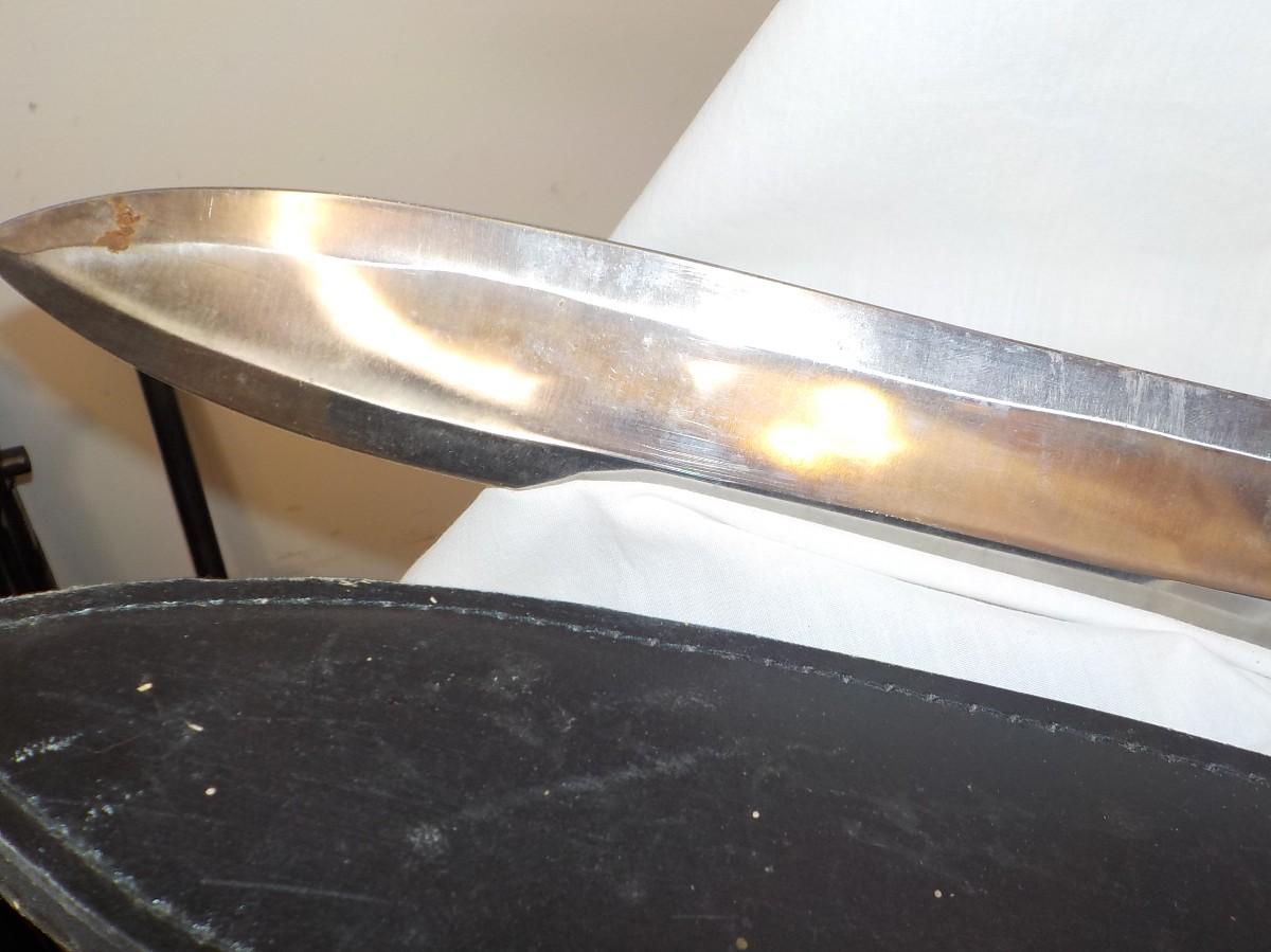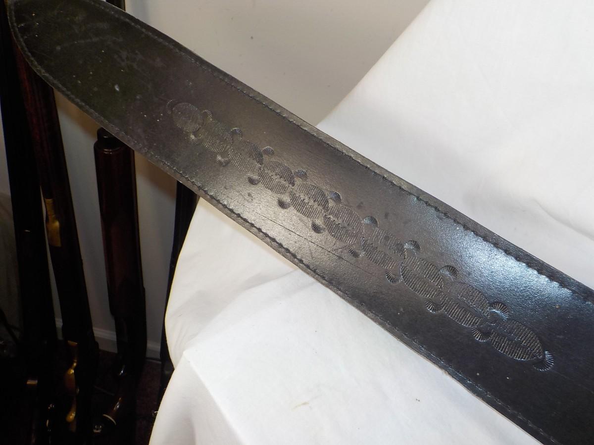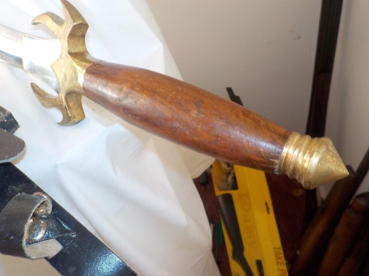 Swedish Armor sword approx. 26 in. with leather scabbard. est. $50 to $130..