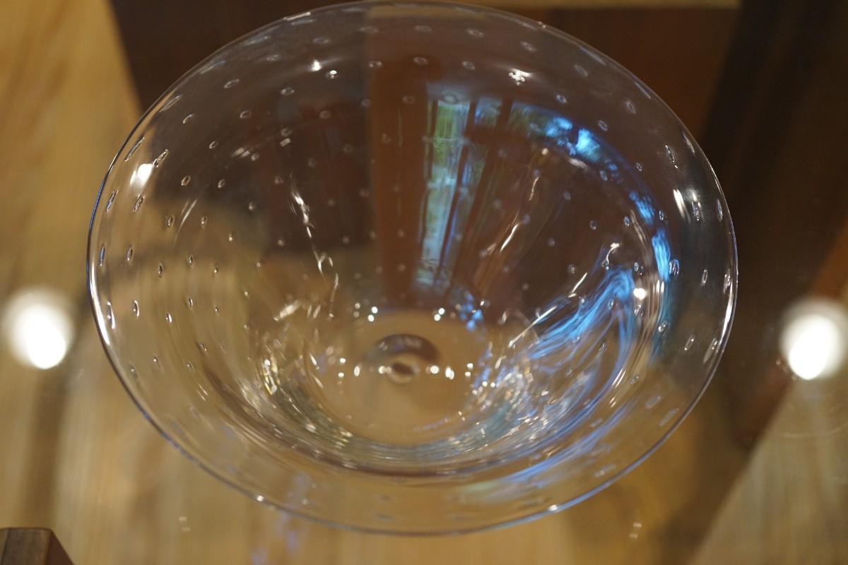 SWEDISH ART GLASS CRYSTAL GLASS BOWL WITH BUBBLES SIGNED