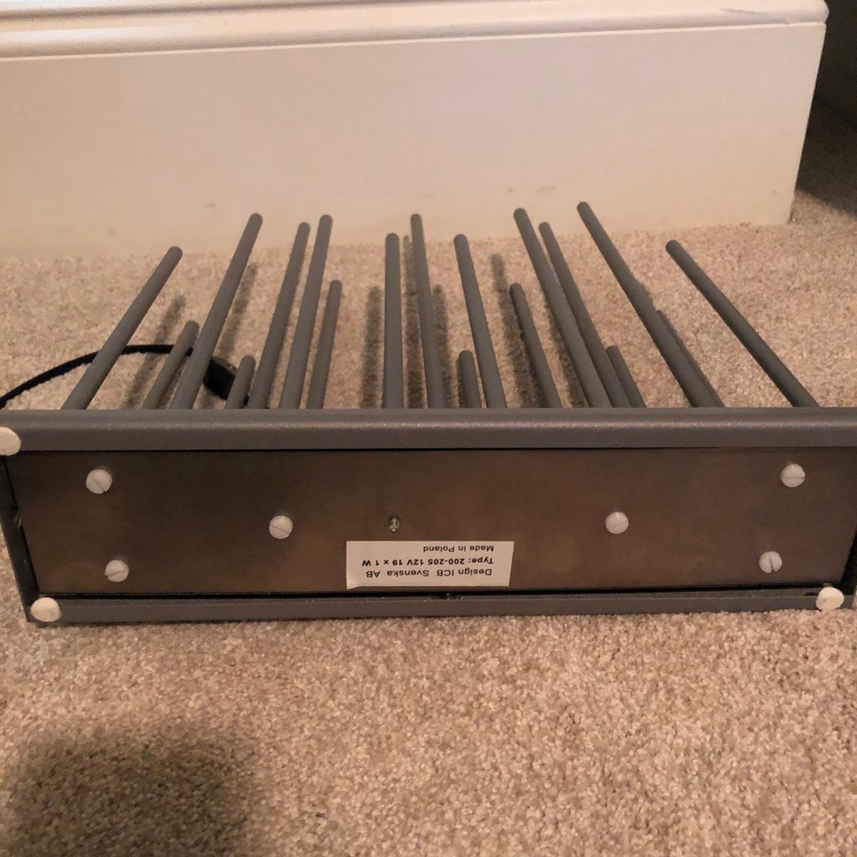 Lot includes two metal Swedish Cascade Futura Lamps with two matching wooden bases. Both lamps worked when tested and includes extra bulb. Lamps measure 3” x 12” x 15” and the bases measure 3.5” x 11.75” x 4”.