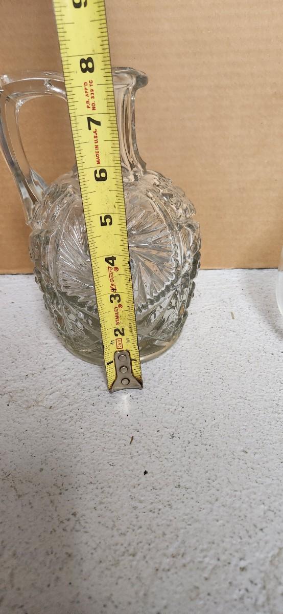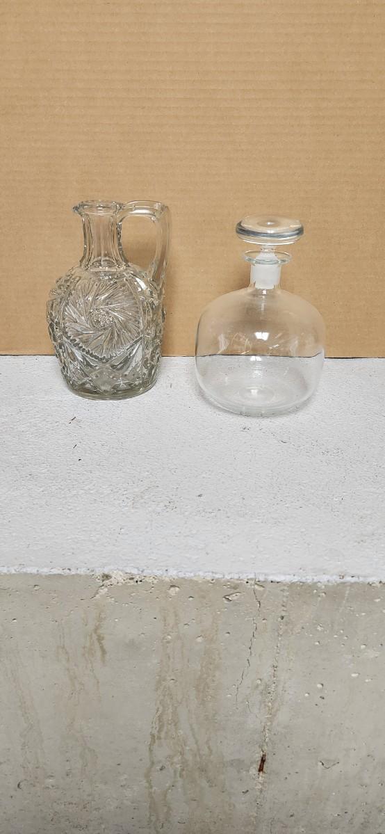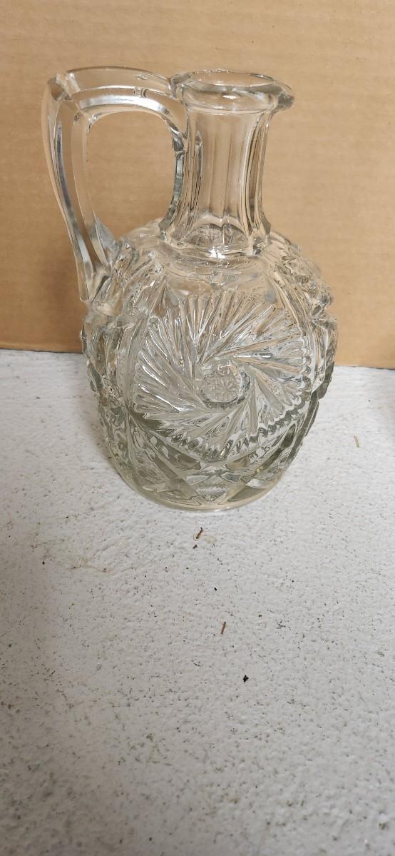 Gorgeous blown Swedish Decanter and an old early American pressed glass pitcher.
