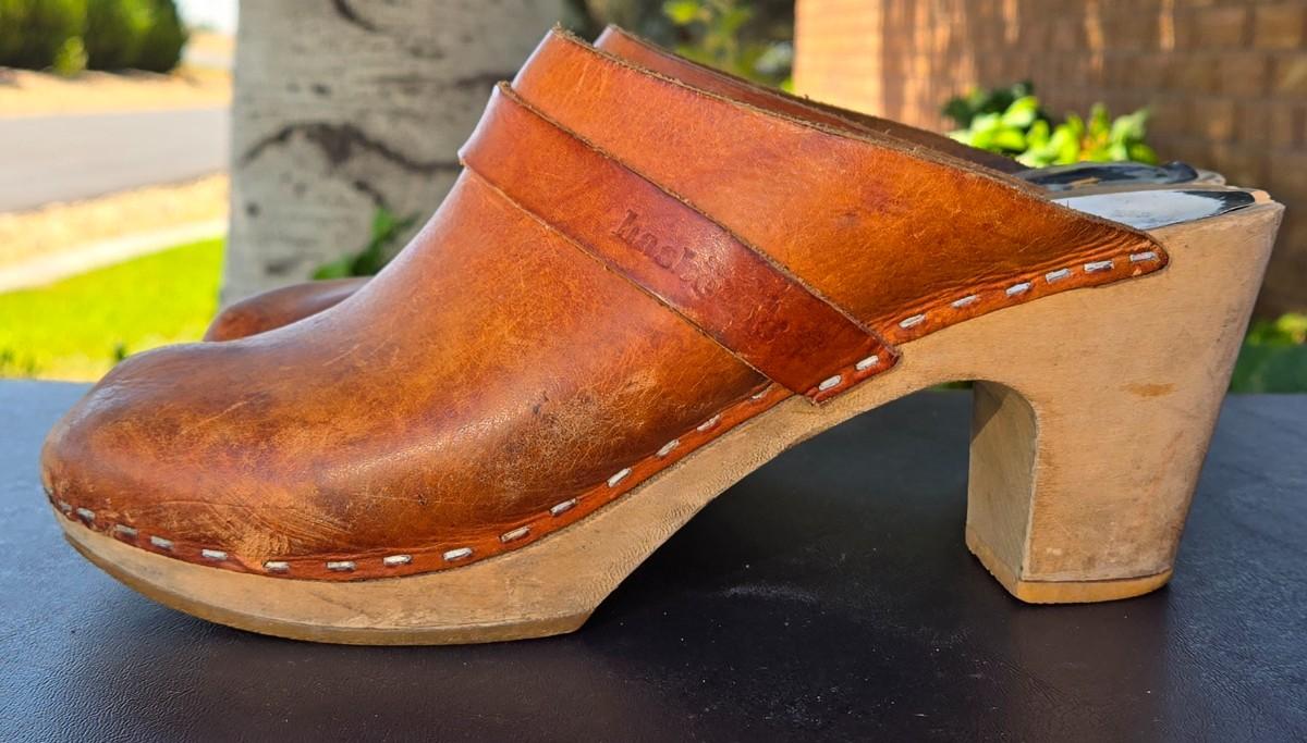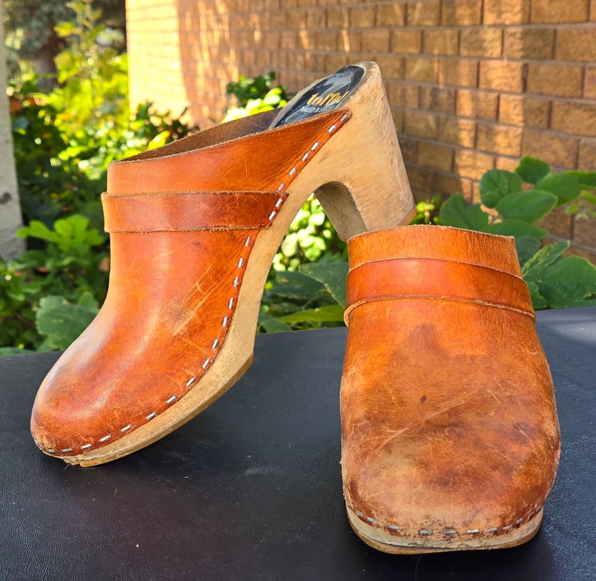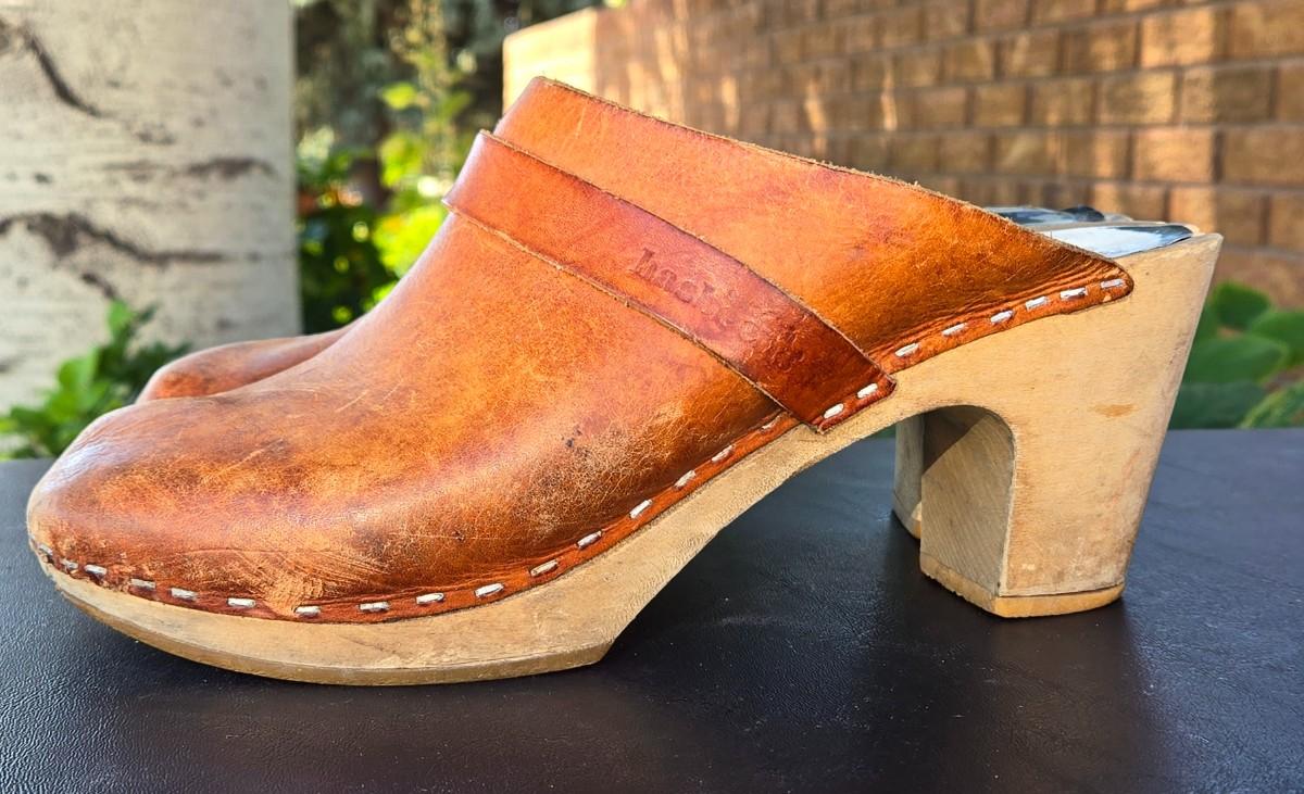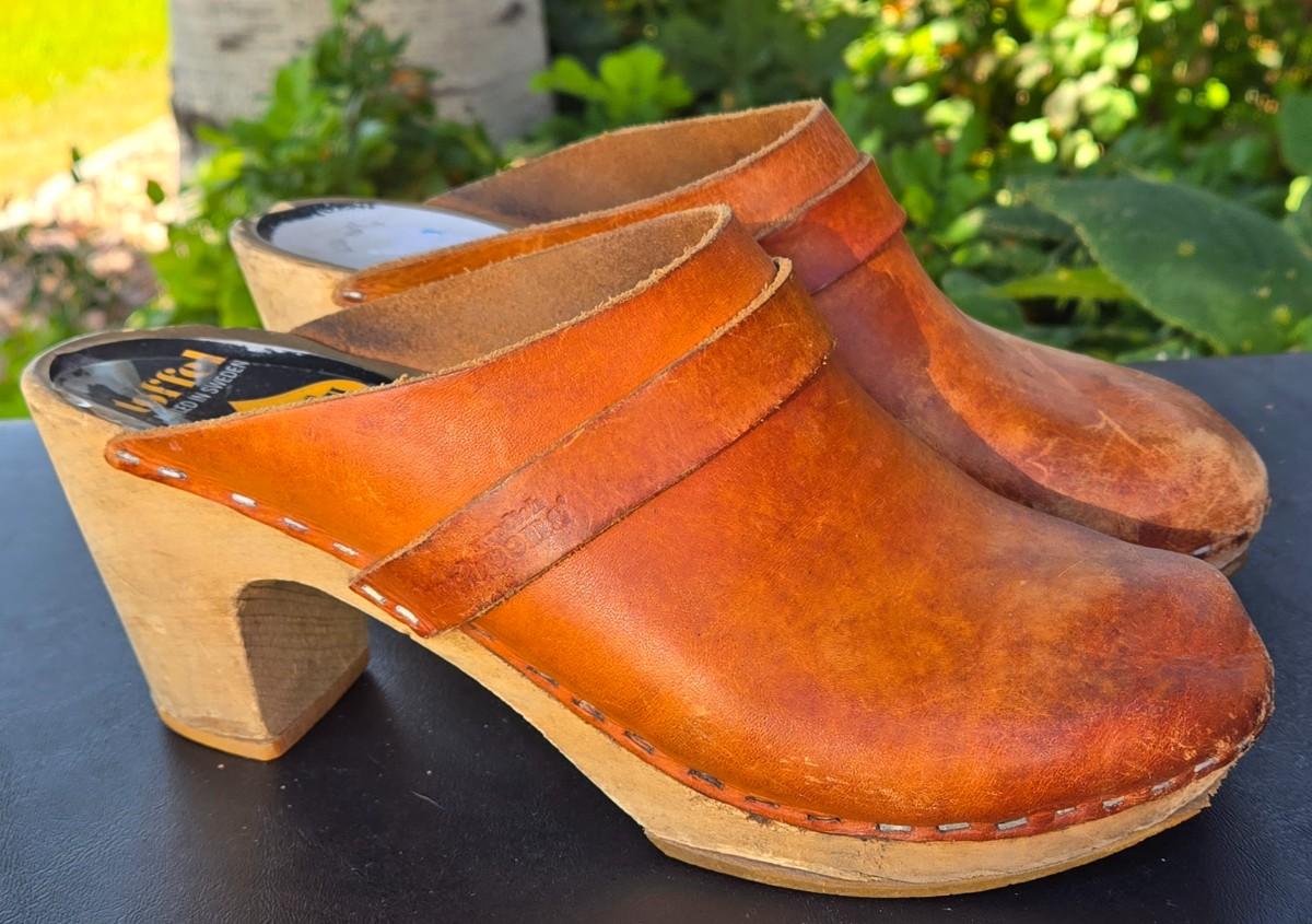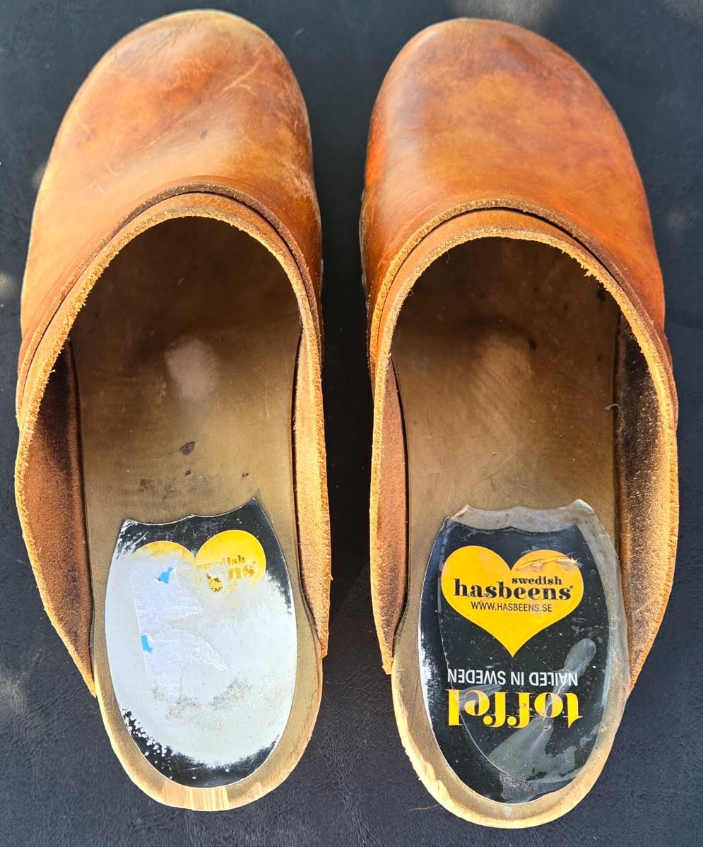 Swedish Hasbeens Toffel Brown Leather Clogs