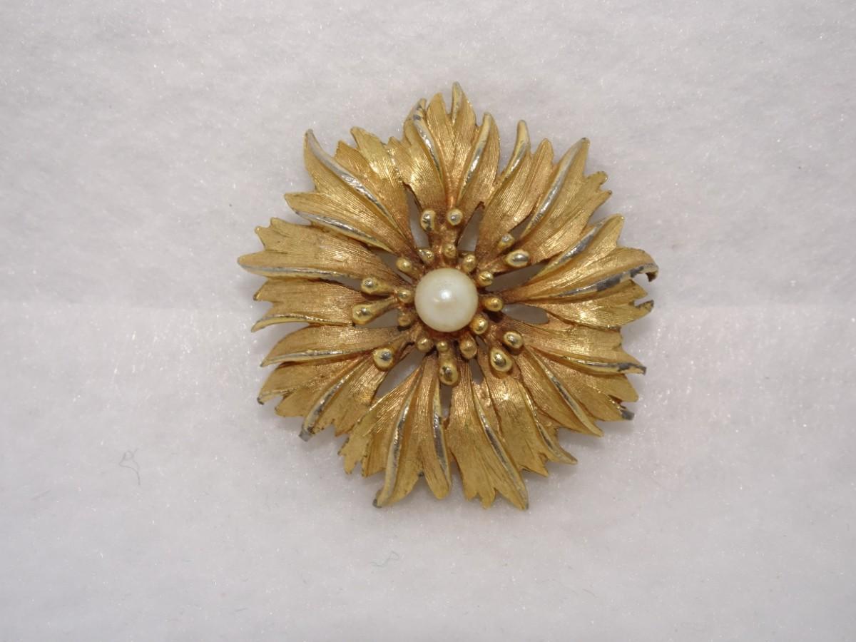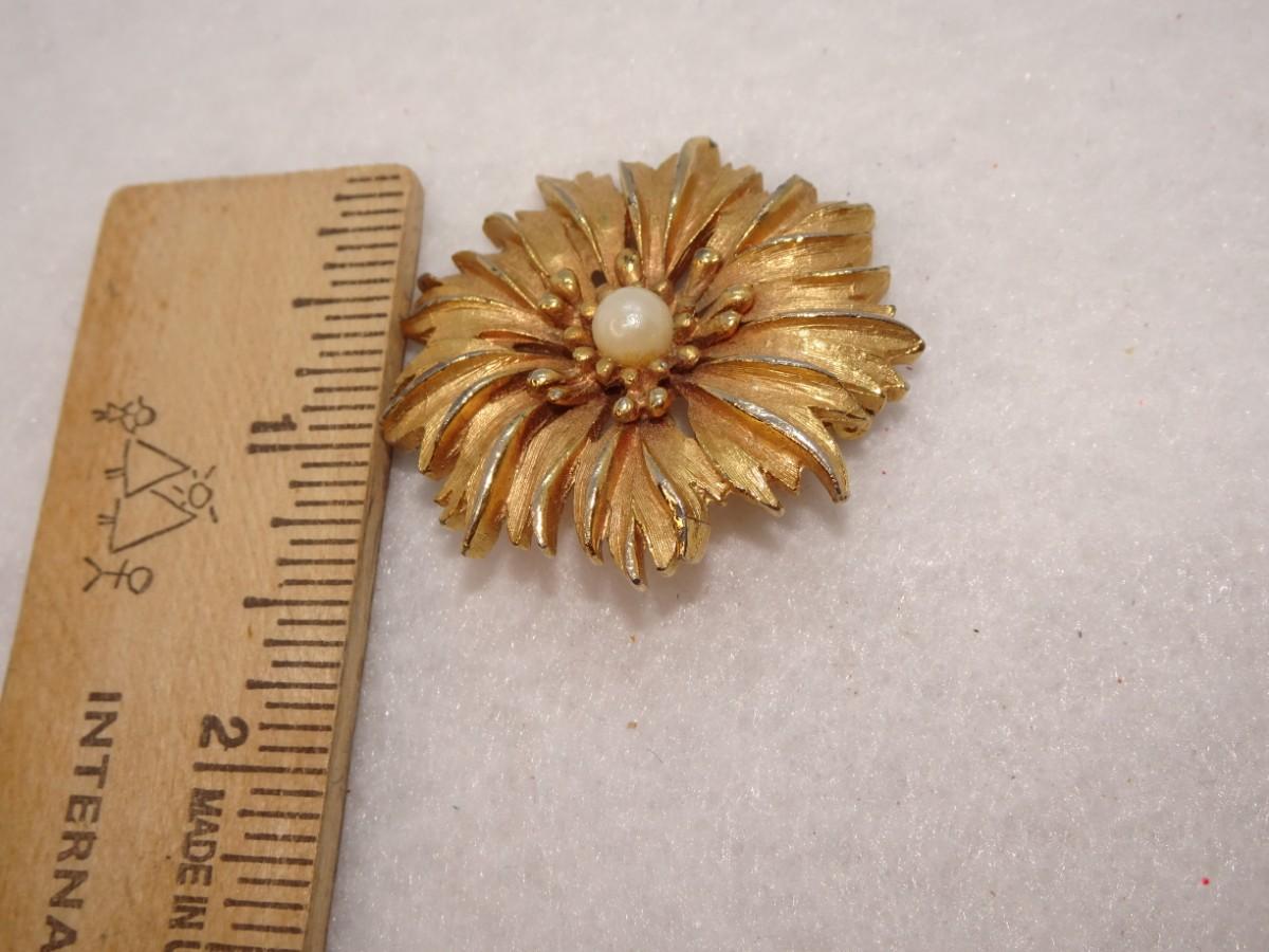 Sweet Gold Tone Daisy Flower Brooch w/center Pearl