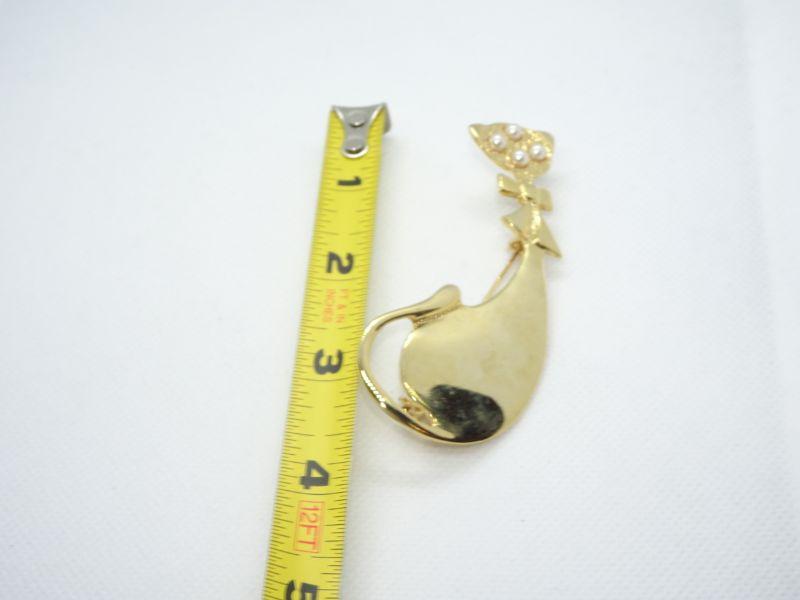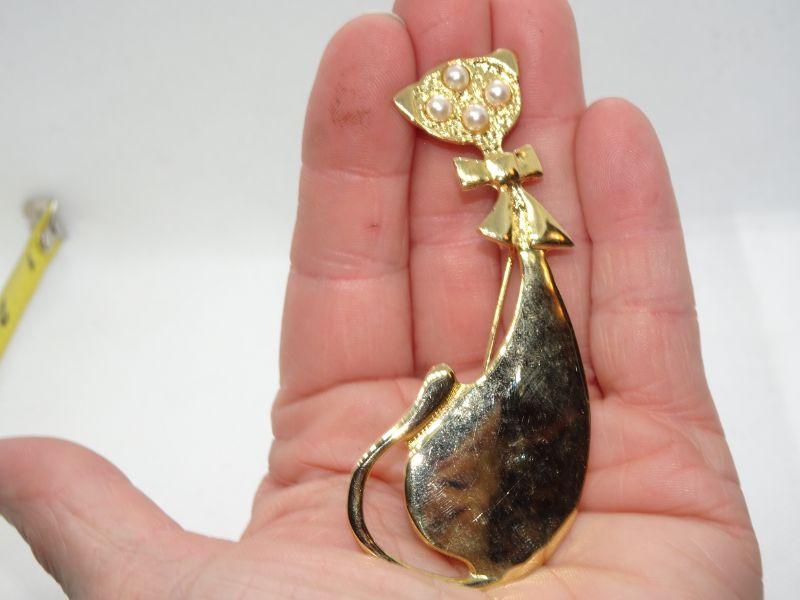 Sweet Gold Tone Pearl Cat Brooch
