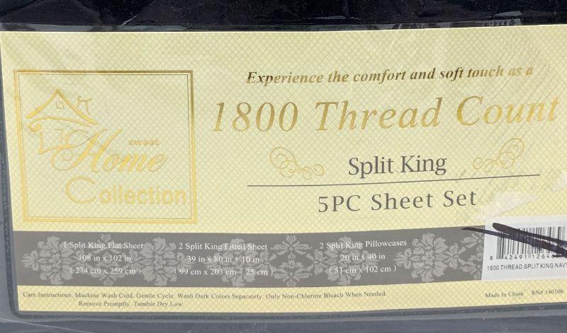 Sweet Home 1800 Thread Count 5 Pc Sheet Set, Split King, Navy - New