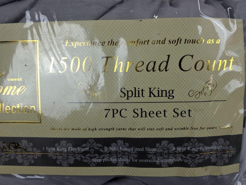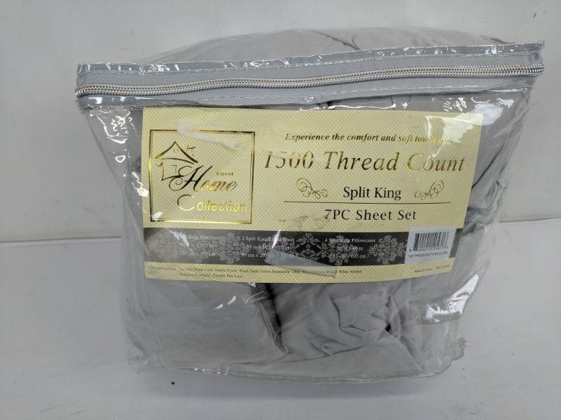 Sweet Home Split King Sheet Set, Gray, 1500 Thread Count