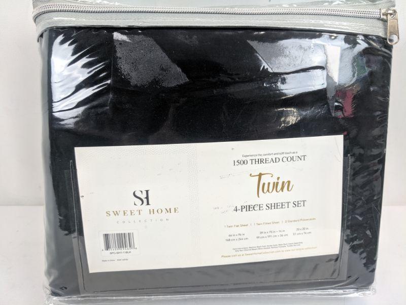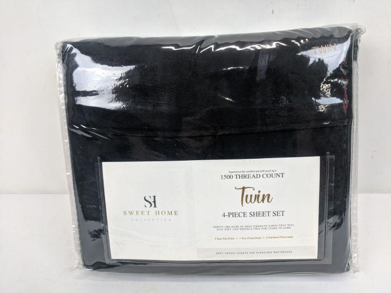 Sweet Home Twin 1500 Thread Count Twin Sheet Set, Black - New