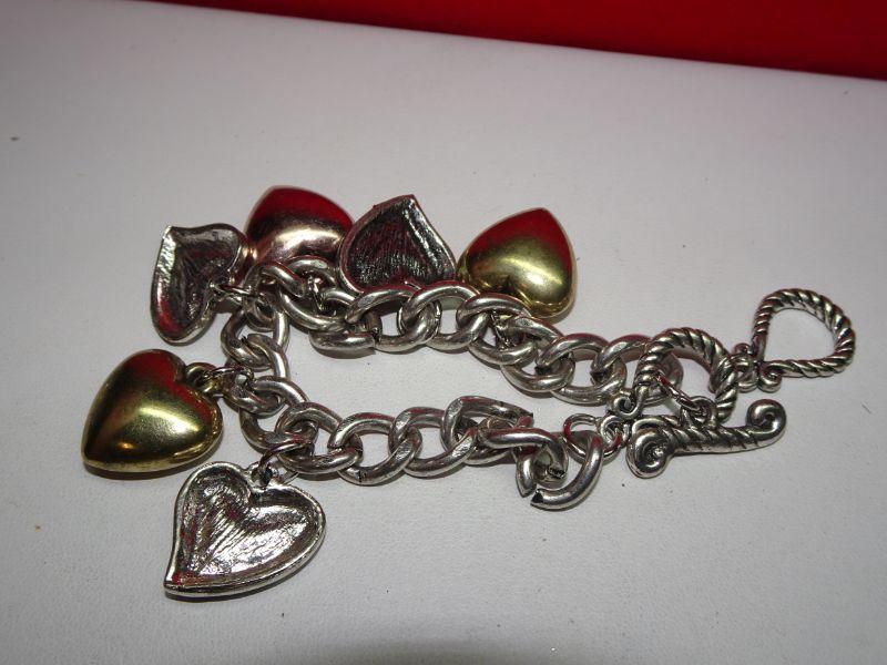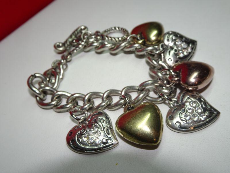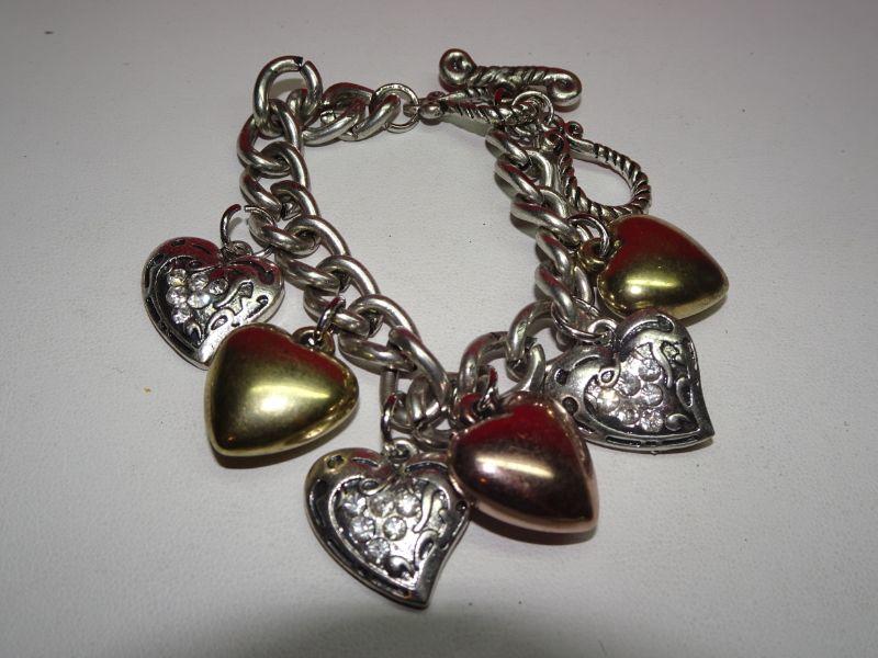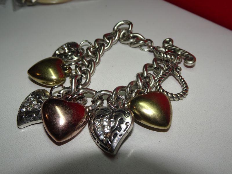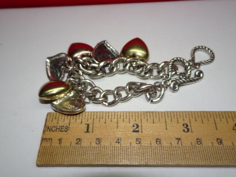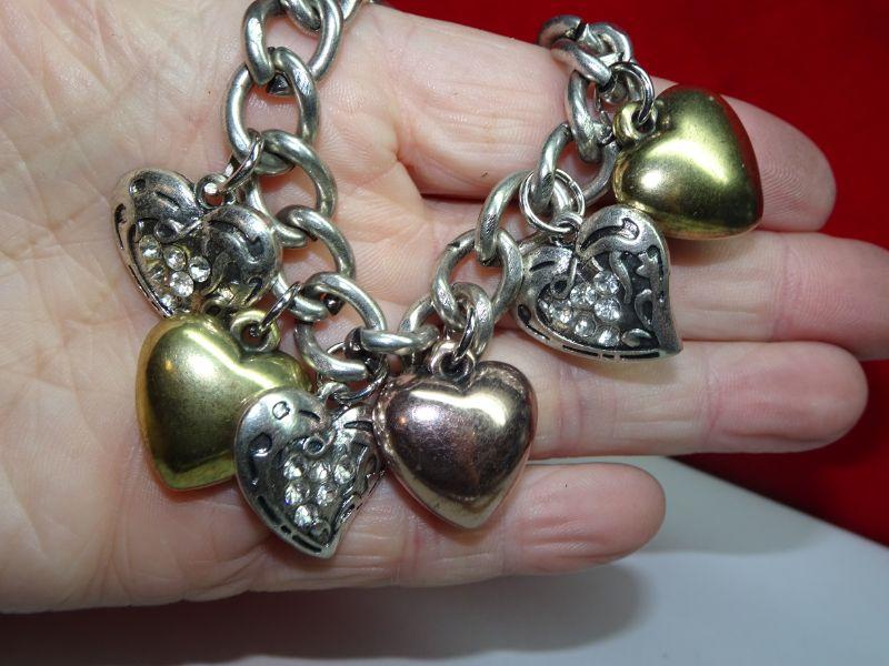 Sweet Little Puffy Heart Silver Tone Charm bracelet, Gold & Rose Gold Color Hearts