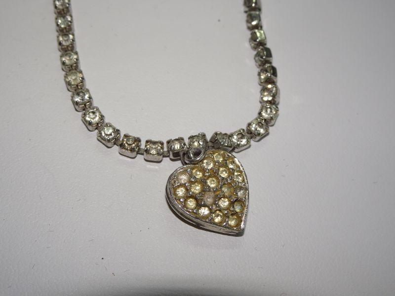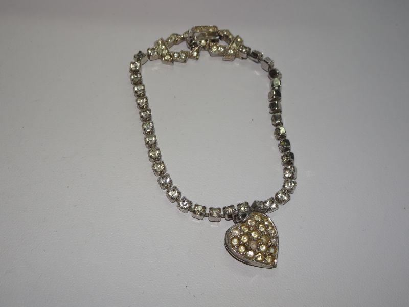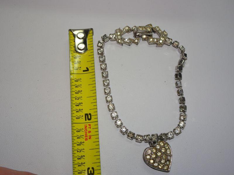Sweet Little Rhinestone Heart Bracelet, Mid Century