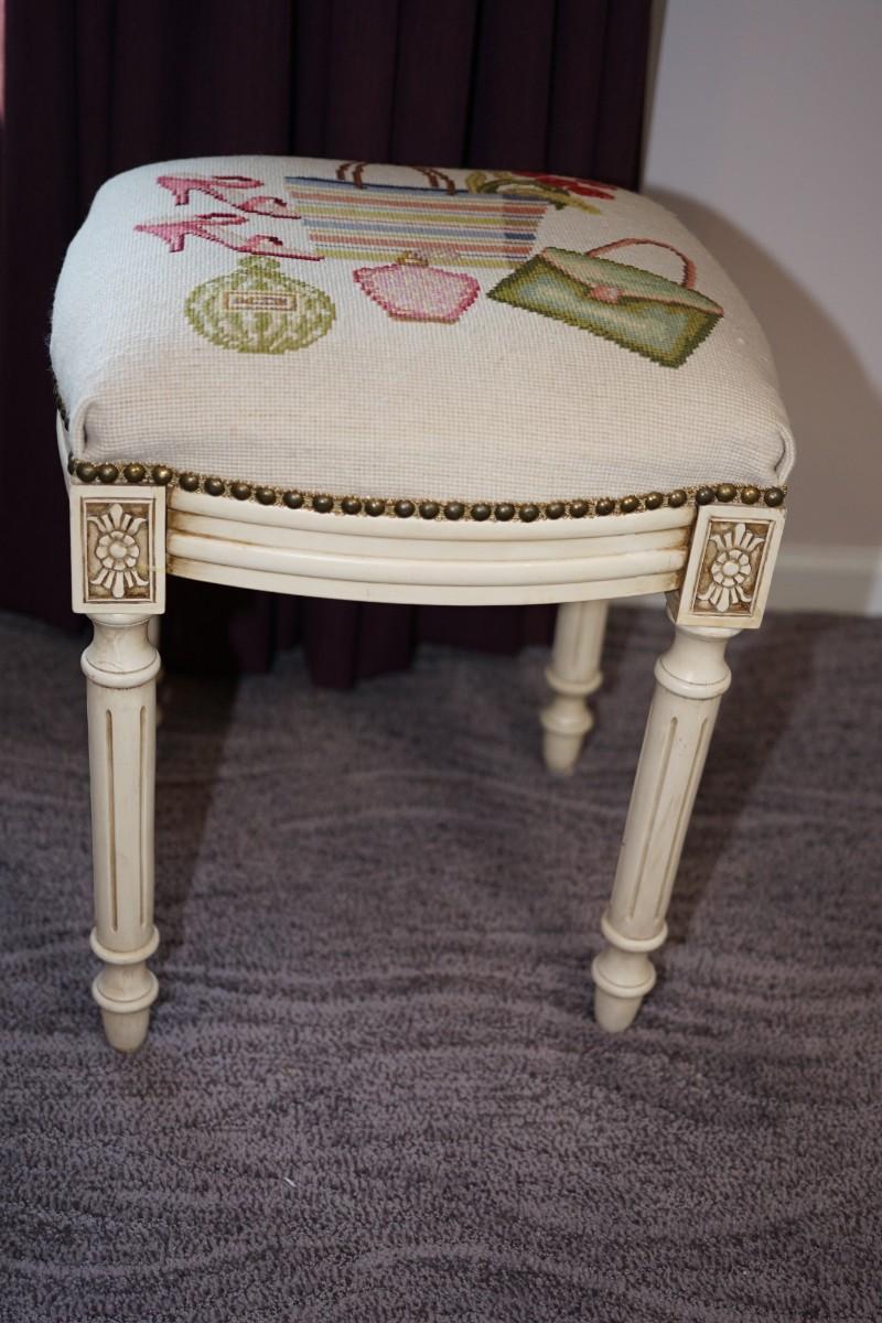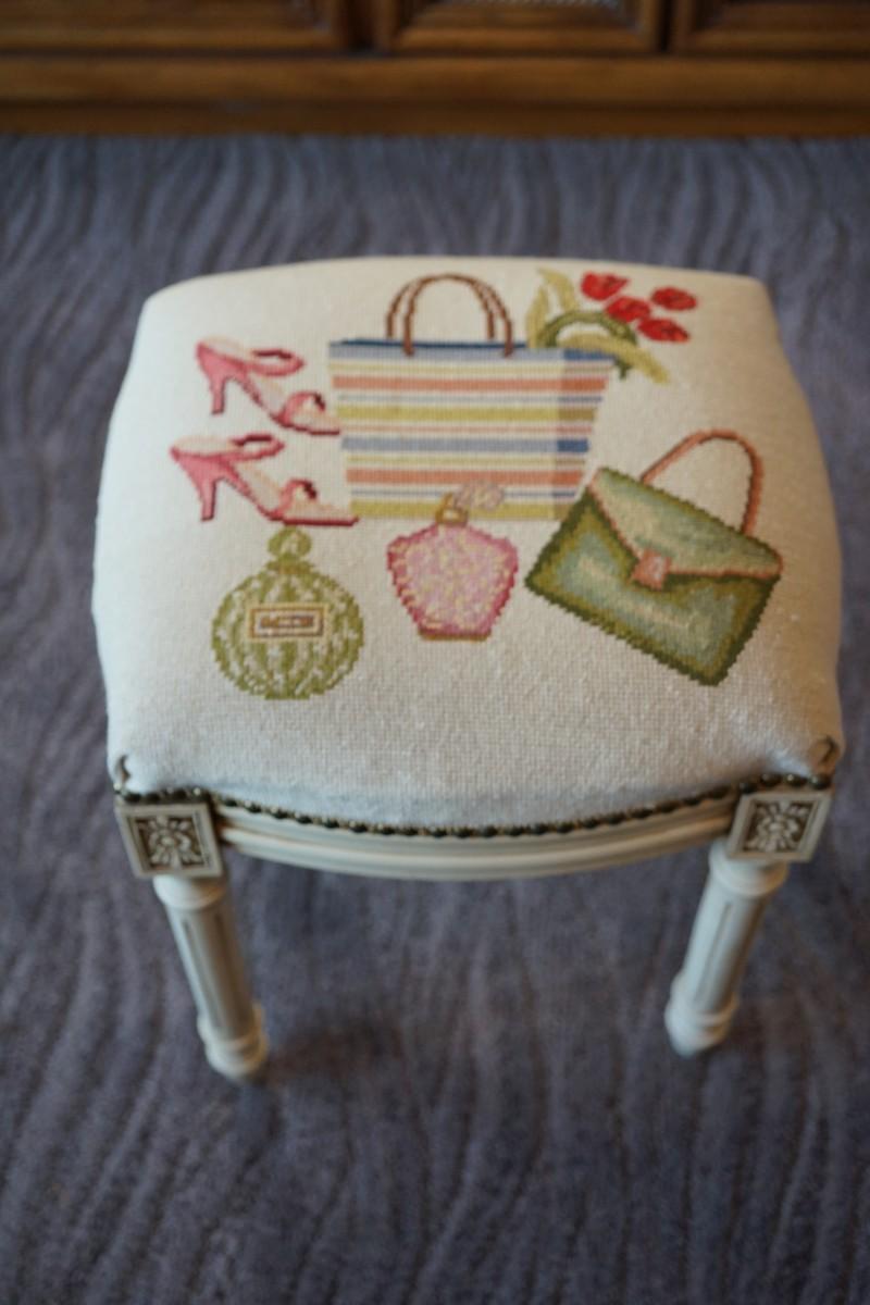 SWEET LITTLE SLIPPER STOOL WITH NEEDLEPOINT OF LADIES ACESSORIES