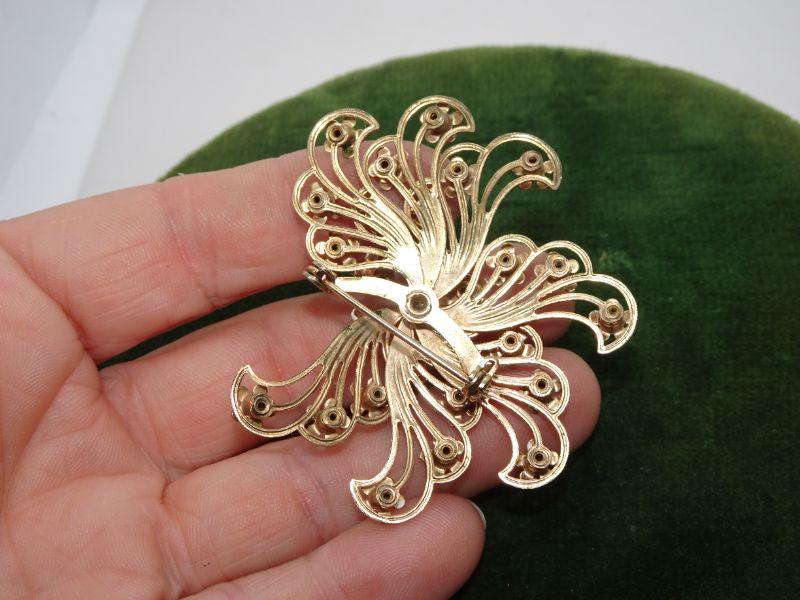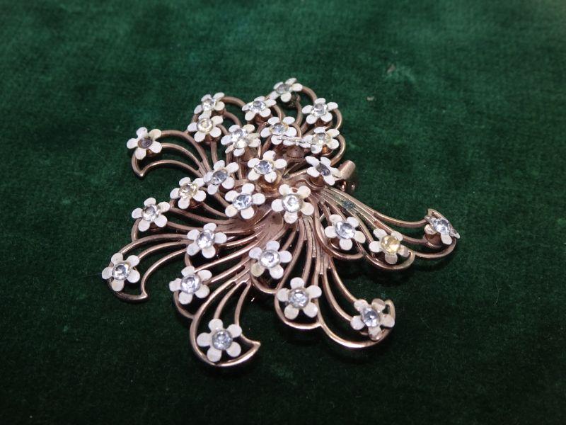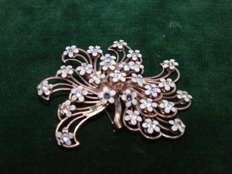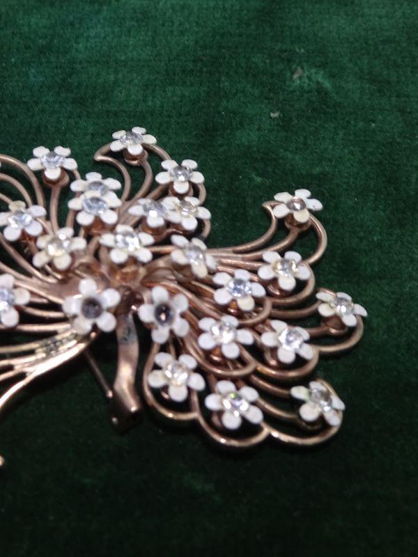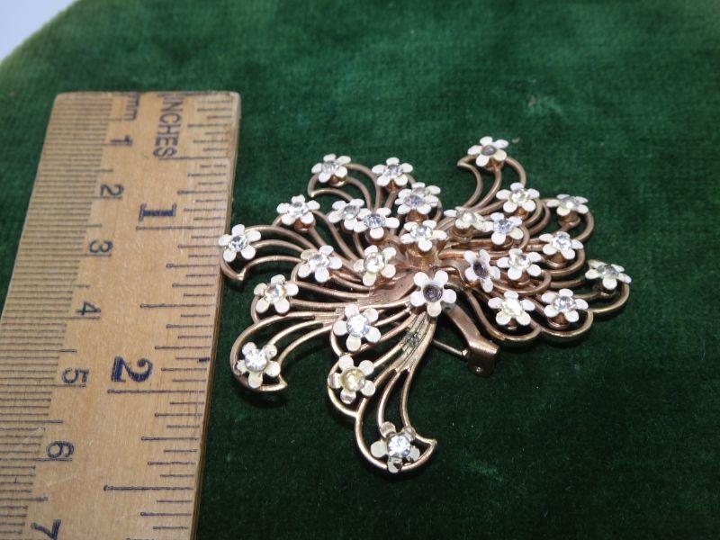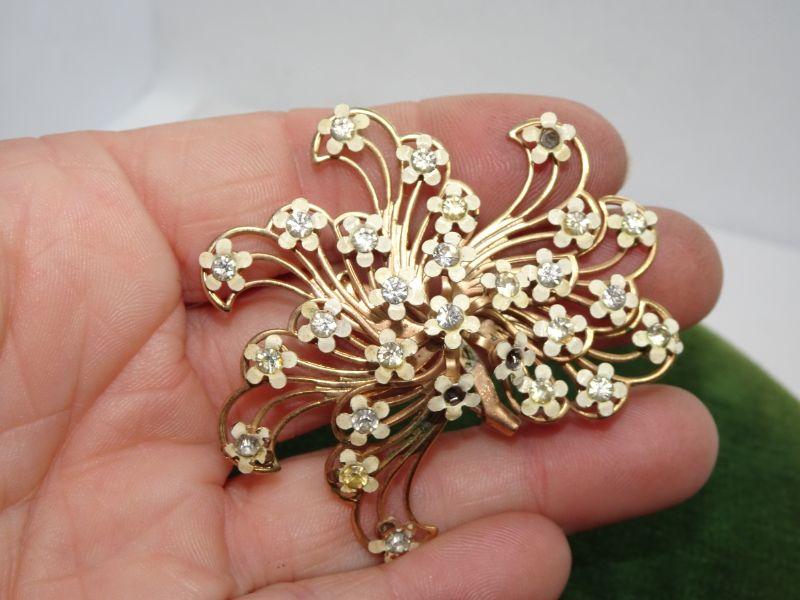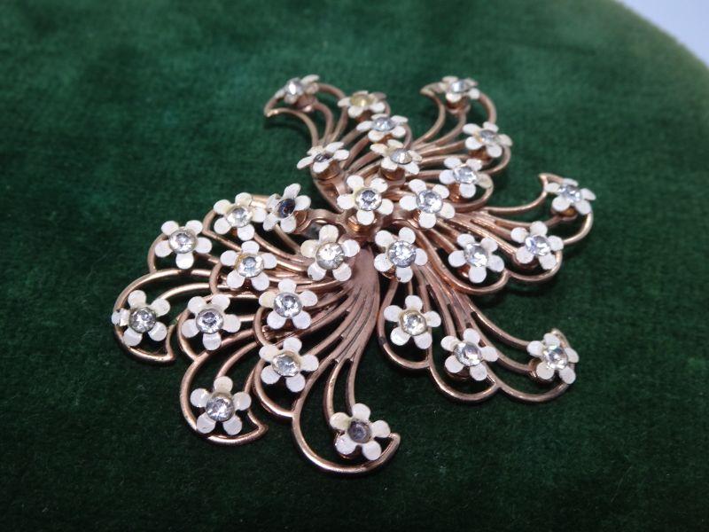 Sweet Little White Flower Brooch, Gold Tone, Rhinestone Centers