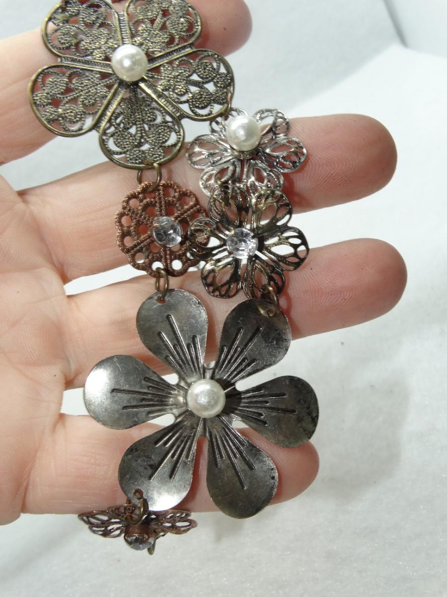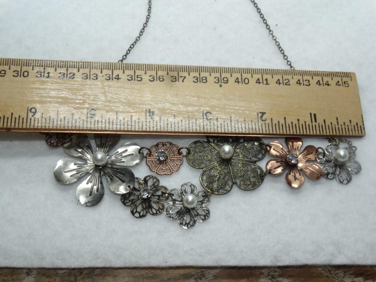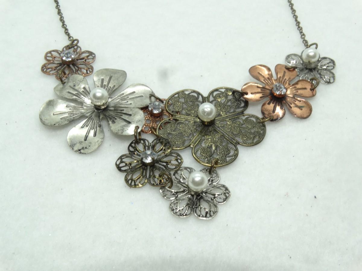 Sweet Silver Tone & Pearl Flower Necklace