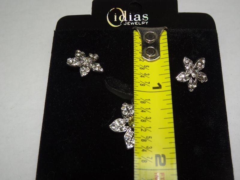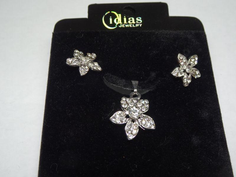 Sweet Silver Tone Rhinestone Flower Pendant & Post Earring Set, Idias Jewelry