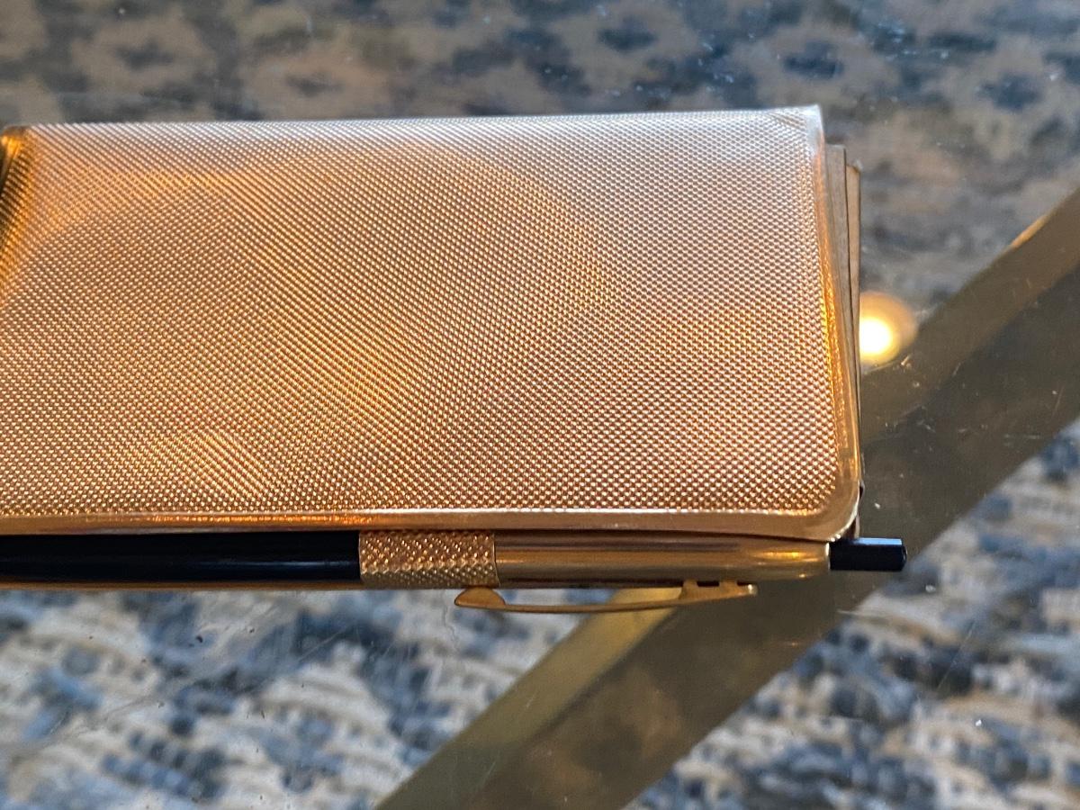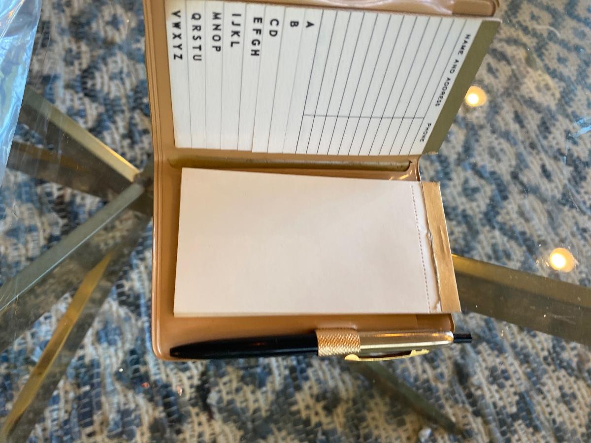 3 x6” little purse sized gold covered notepad and address listing with little pen. Pen dry, but could simple refill.