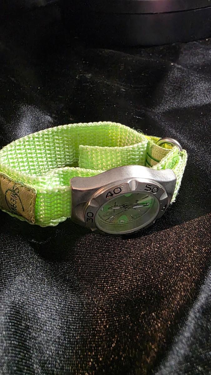 Energetic and adventurous, this lime green Swerve sport watch feels like a burst of fresh air — the kind of timepiece made for movement, sunlight, and play. Its bold green dial mirrors the color of its rugged nylon strap, creating a unified look that feels outdoorsy, youthful, and alive with momentum. The brushed metal case and diver-style numbered bezel give it a tougher edge, softening the glow of its bright color with a sense of durability and readiness.