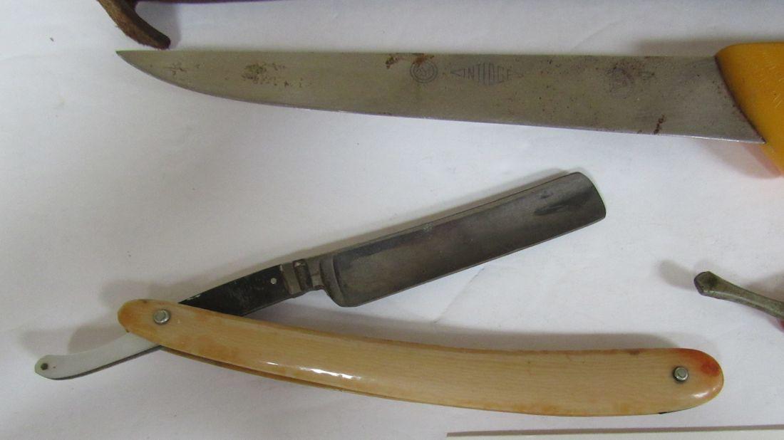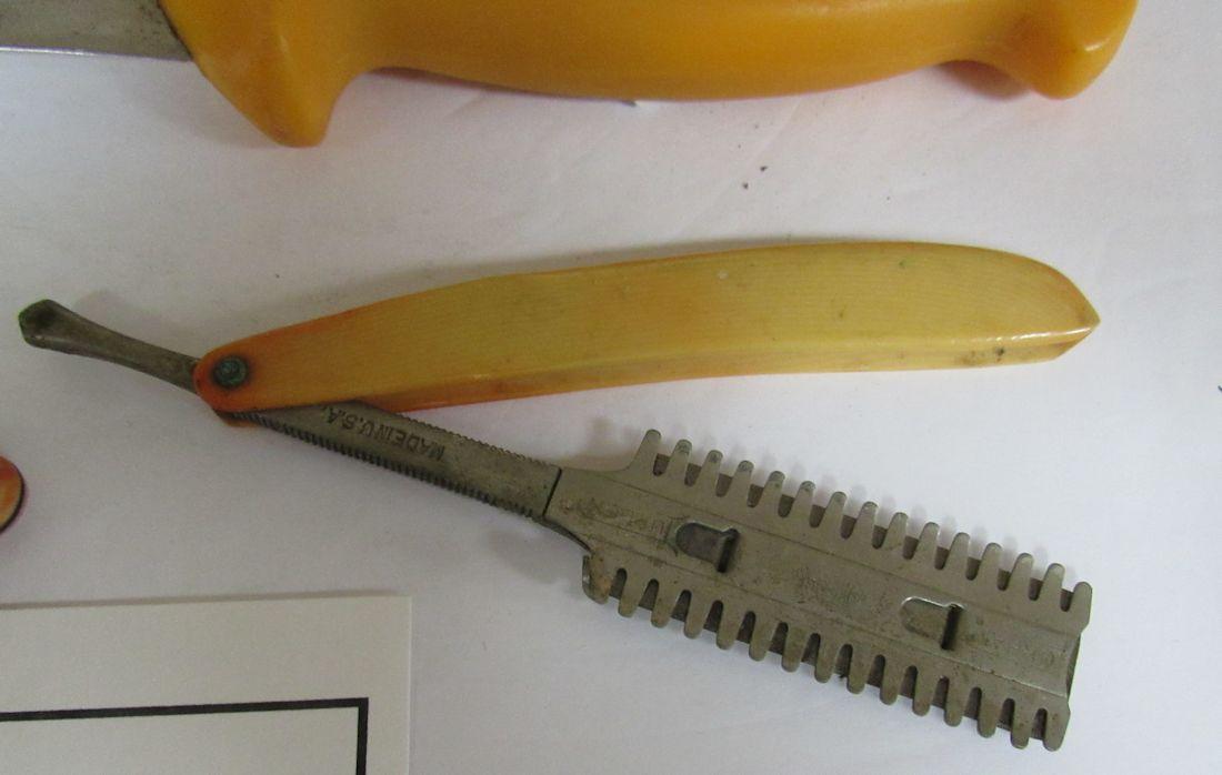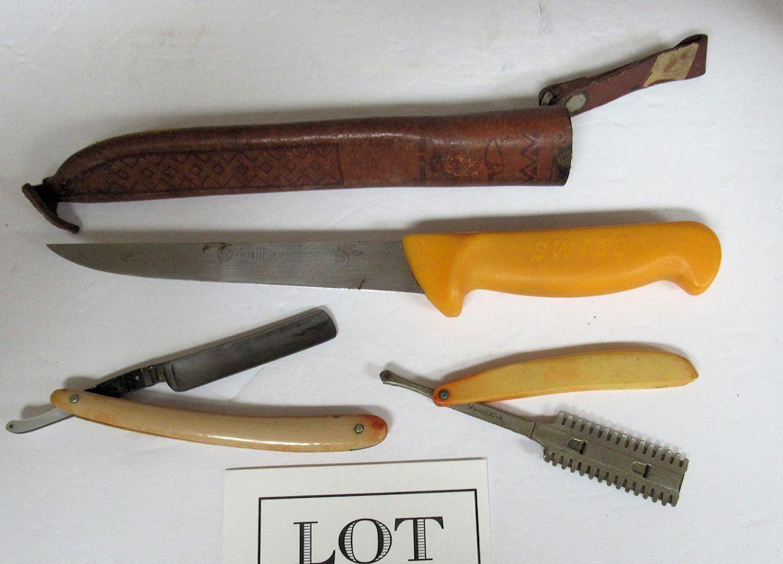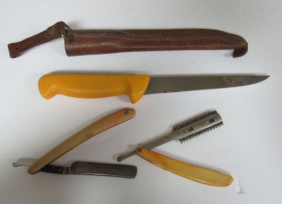 Used, the handles on the razors are stained. Shipping is available at shipping cost plus $5.00 handling fee on up to 6 lots, $10.00 handling fee on 7 or more lots or two boxes. $15.00 handling fee on 3 boxes. Helps cover shipping materials and labor cost.