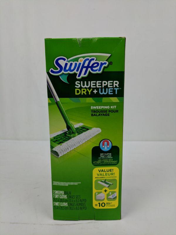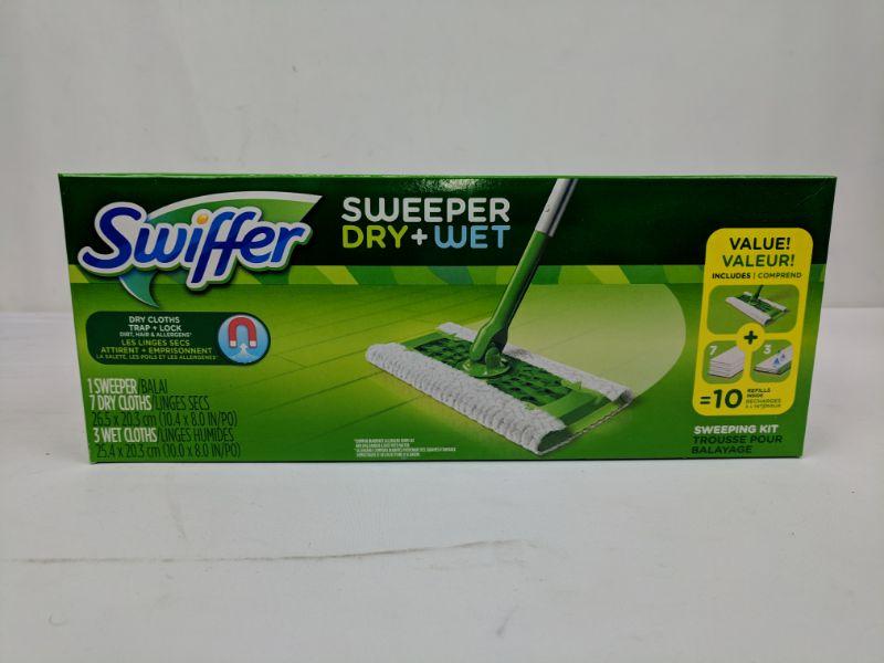 Swiffer Dry + Wet, Sweeping Kit, 1 Sweeper, 7 Dry Cloths, 3 Wet Cloths - New