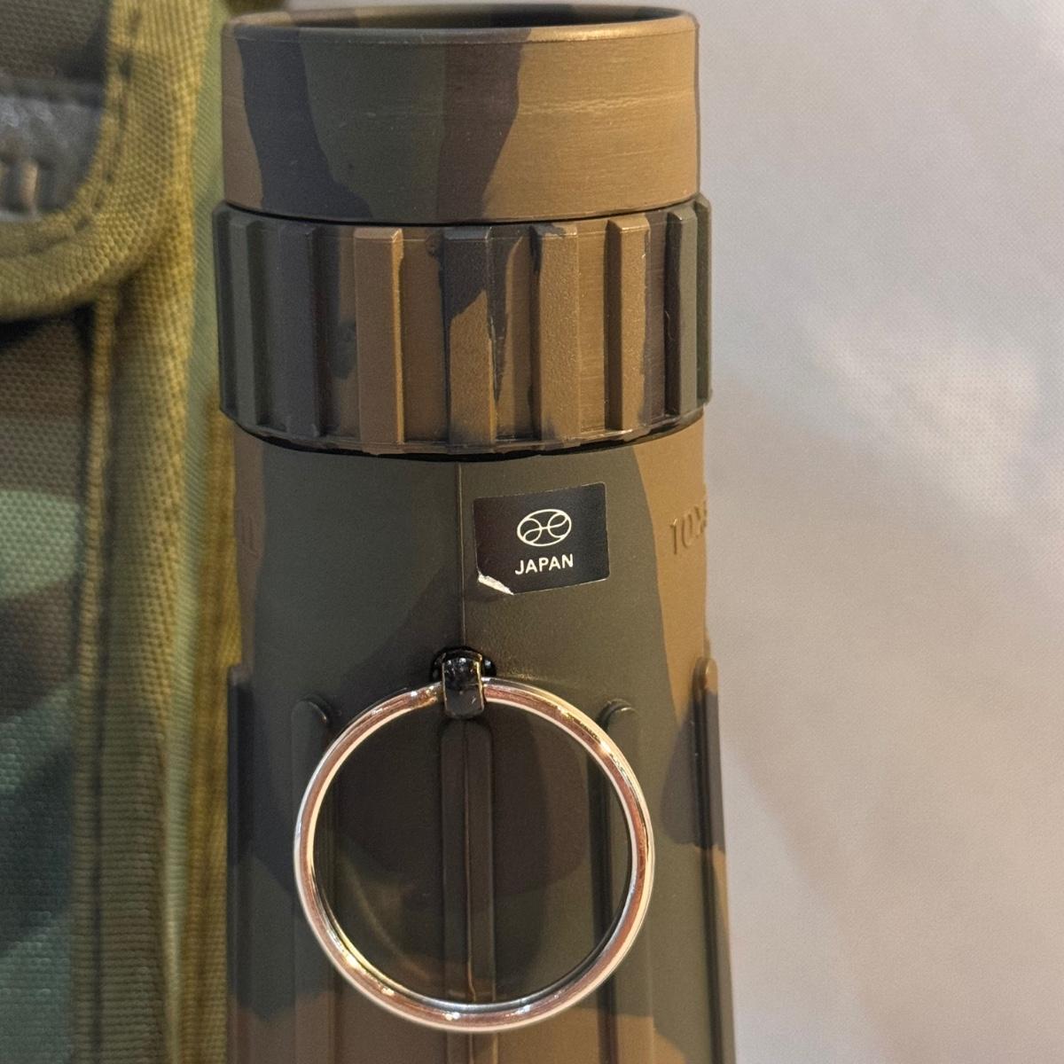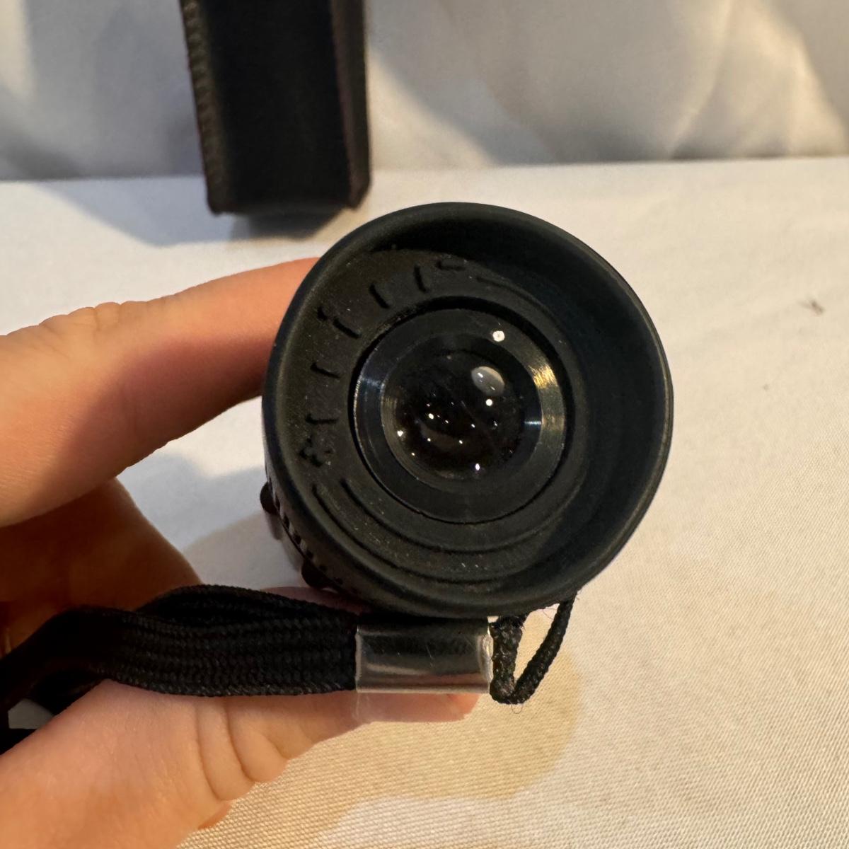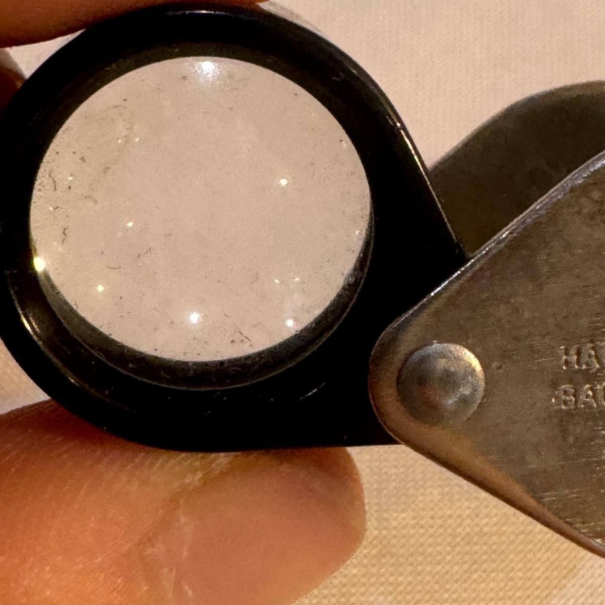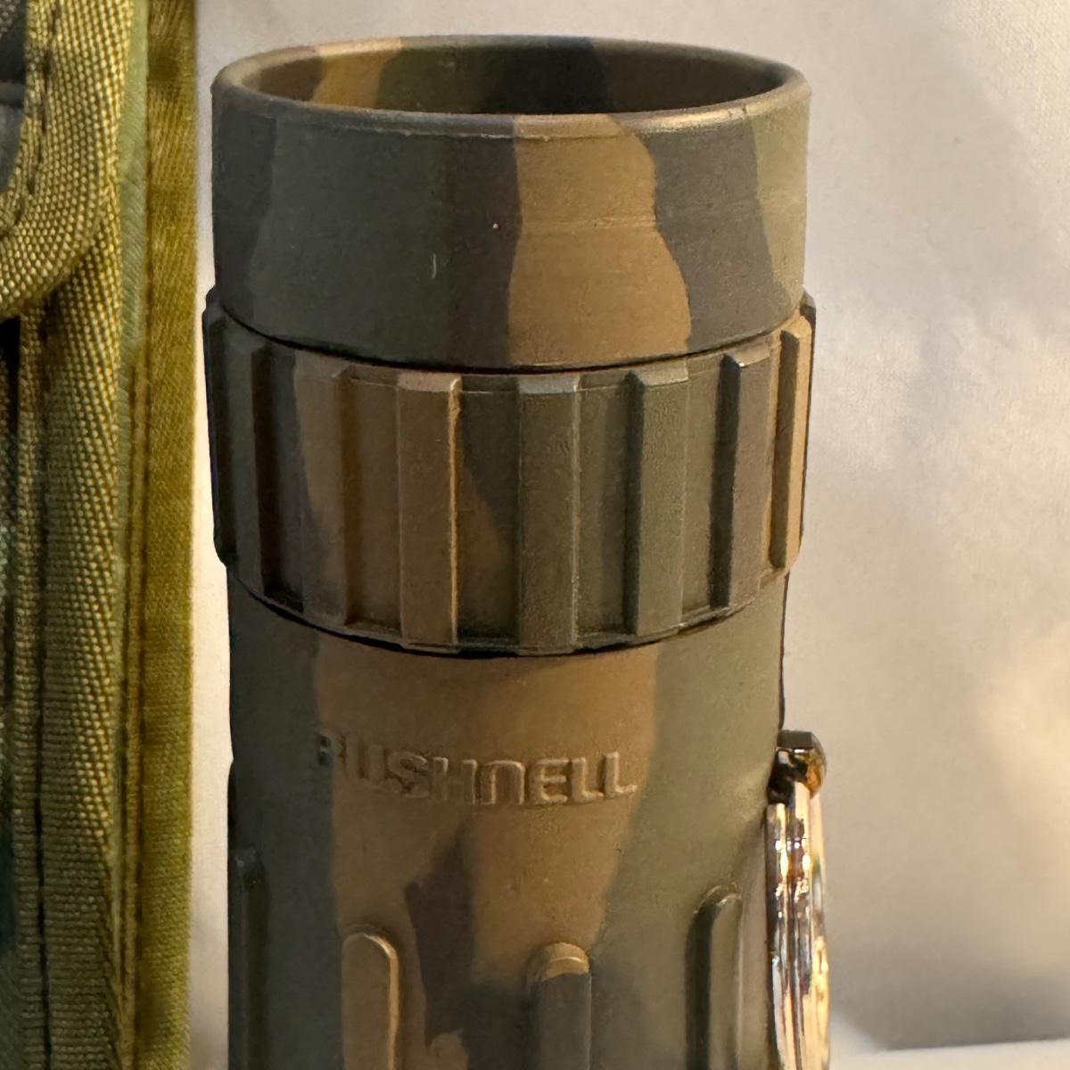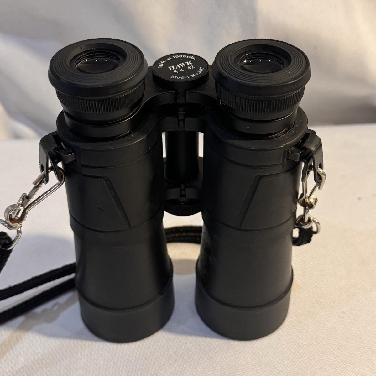 This lot includes Swift “Hawk” Binoculars in their own bag, one Bushnell camouflage monocular in its own case, one Carton monocular, and one Bausch and Lomb quarter-size magnifier. The Bushnell monocular measures 2” x 6.5”H. Shipping available.