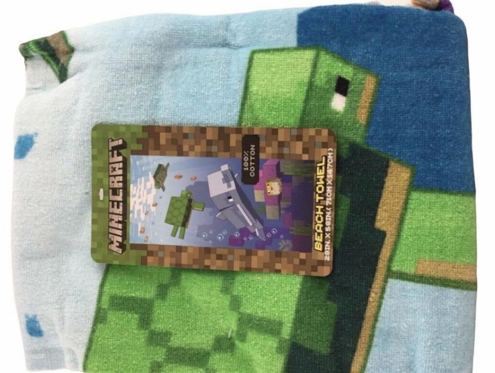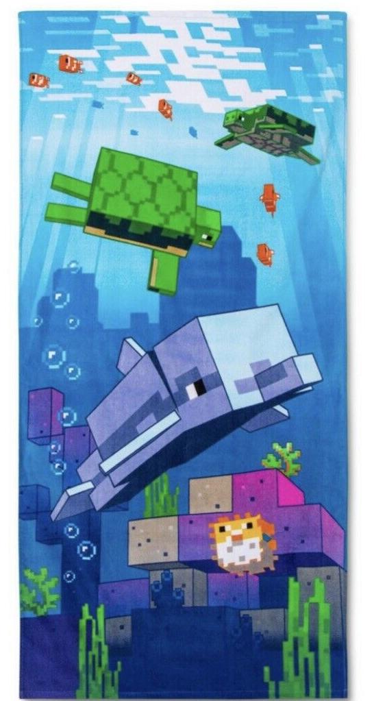 Swimming Around Beach Towel Blue - Minecraft 28”x58” 100% Cotton