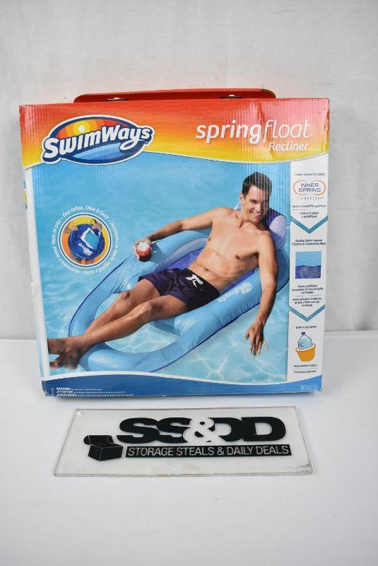 SwimWays Spring Float Recliner - Swim Lounger for Pool or Lake - Dark Blue/Light Blue. Used/Works