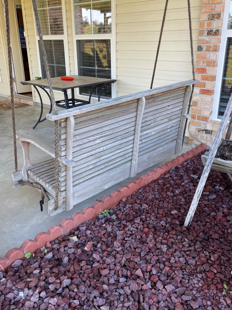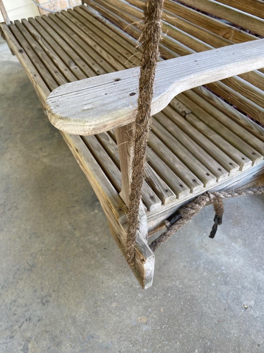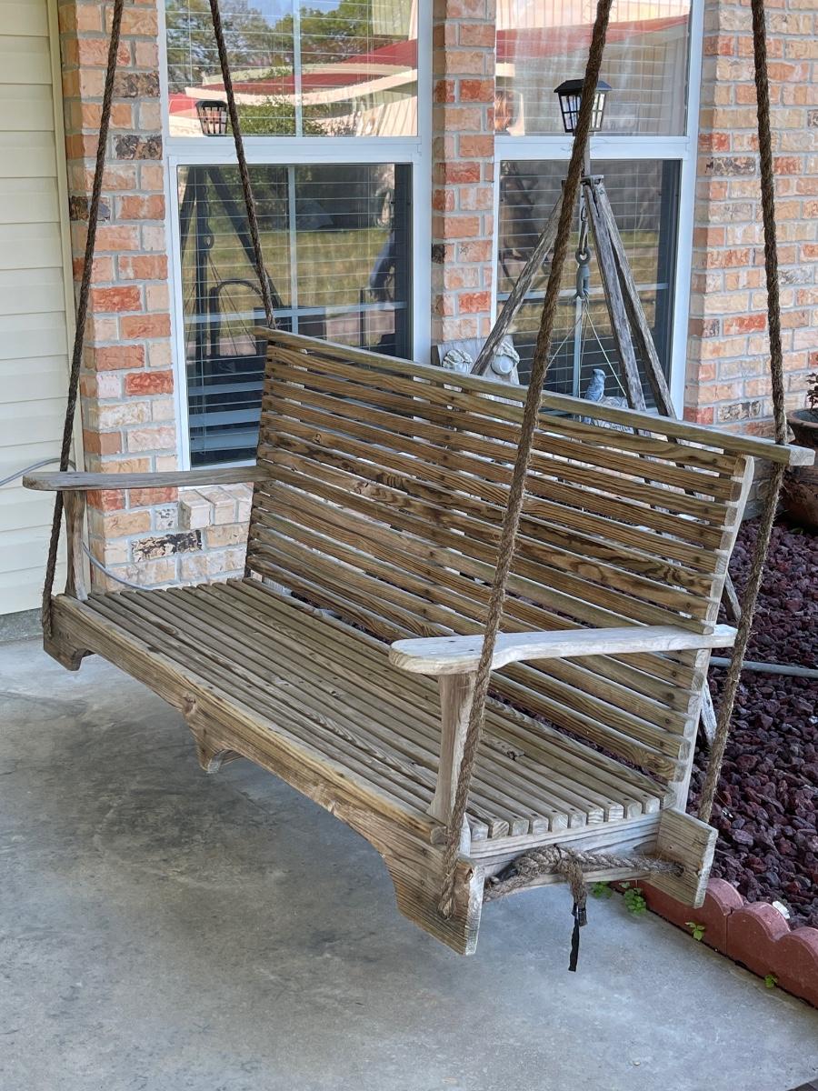 Hand Made by Papa with treated pine. Has rope hangers. 31” H x 67.5” W x 27” D