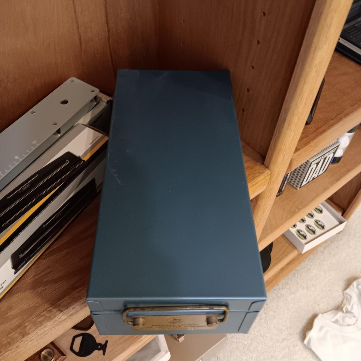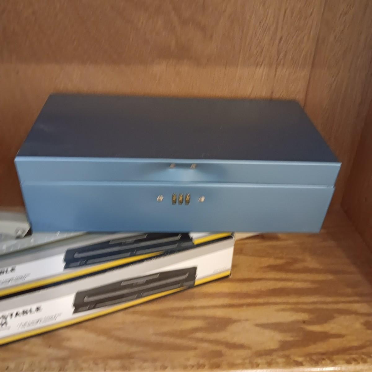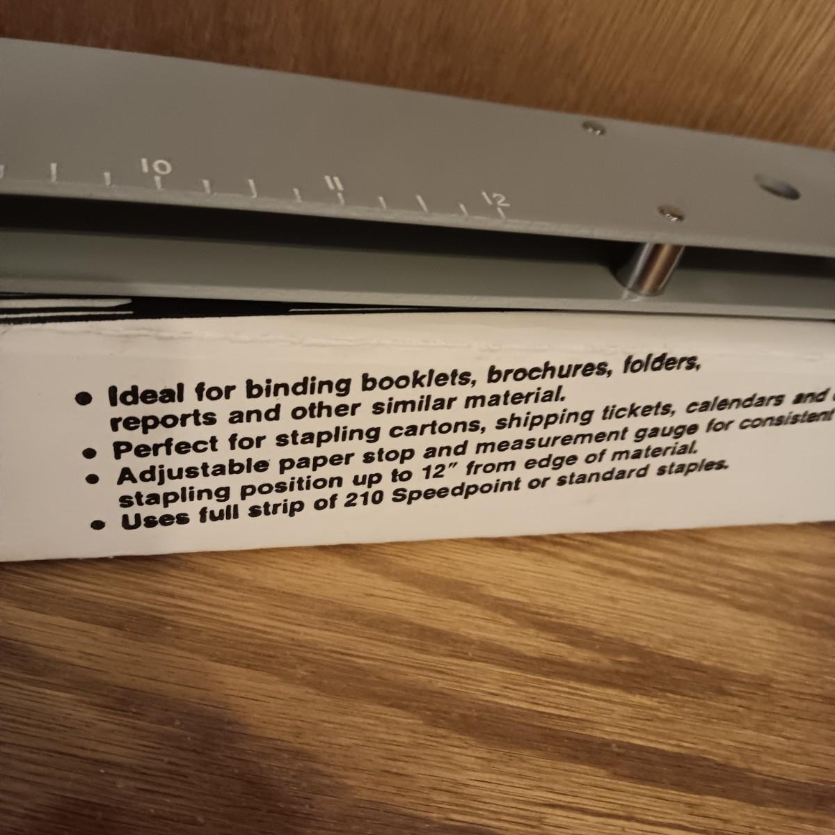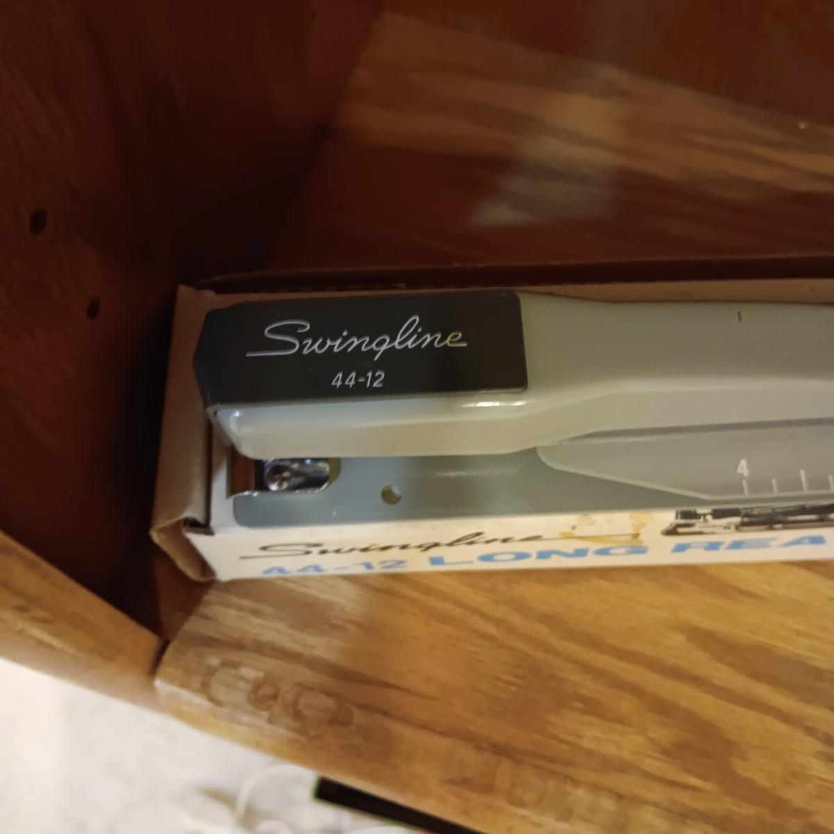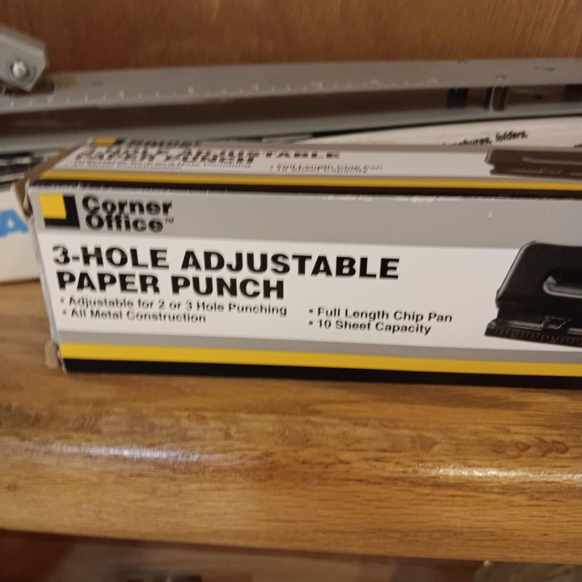 SWINGLINE LONG REACH STAPLER, 3 HOLE PUNCH AND A COMBINATION METAL BOX