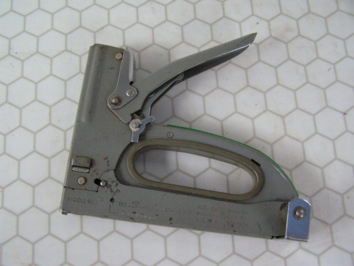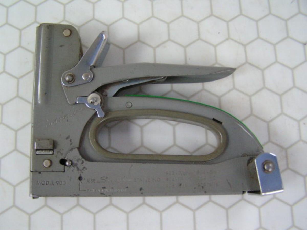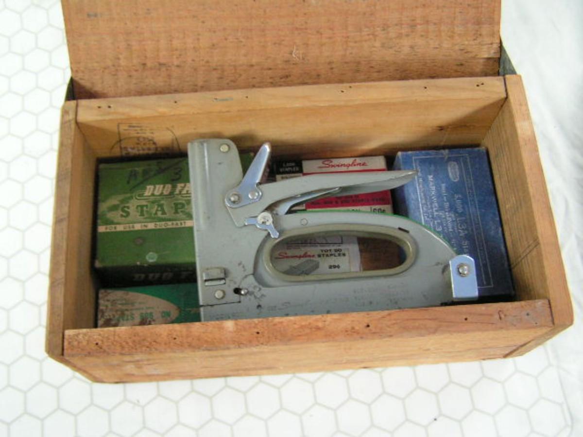 Swingline model 900 tacker stapler, vintgage, staple size 3/16 to 9/16 and a bunch of staples all in a home made wooden box.
