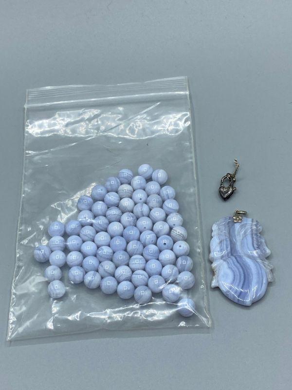 Swirl agate beads and pendant. Was once a necklace, has a clasp in the bag. Recreate a necklace or wear the pendant on a different chain. Pale bluish grey swirl.