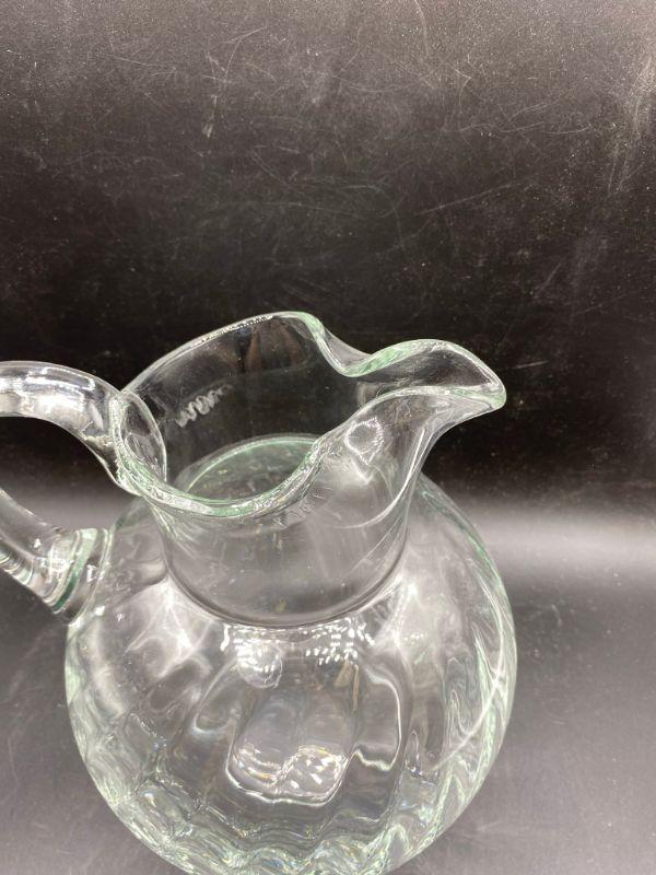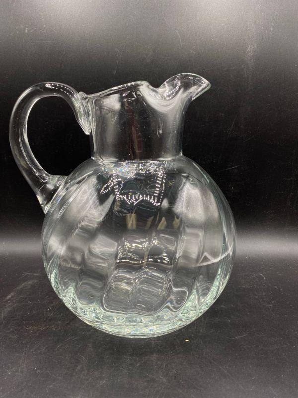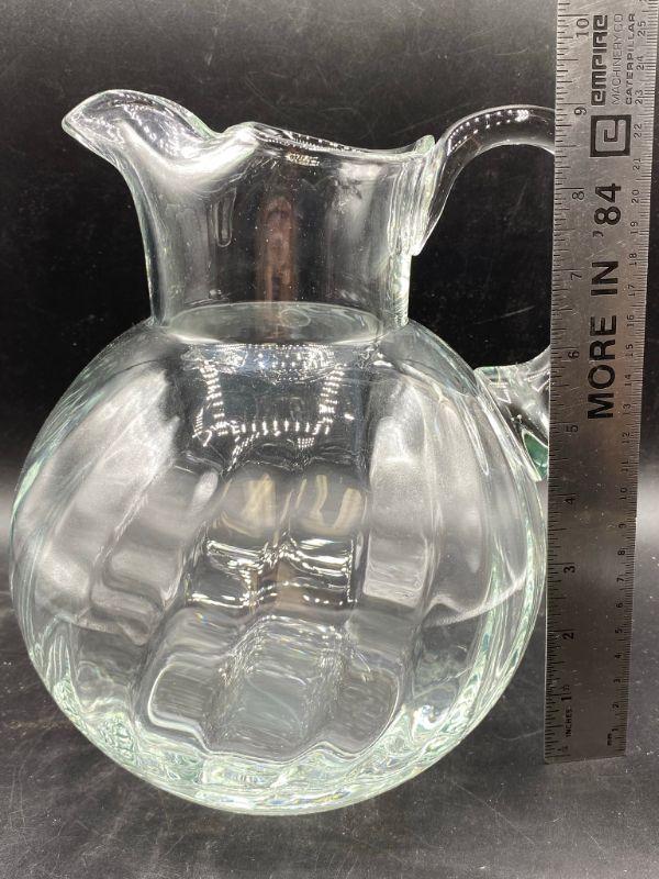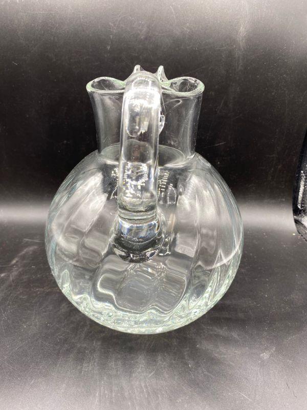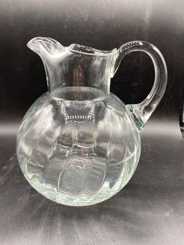 Swirled glass water pitcher. About 9" tall. Good condition, no chips.