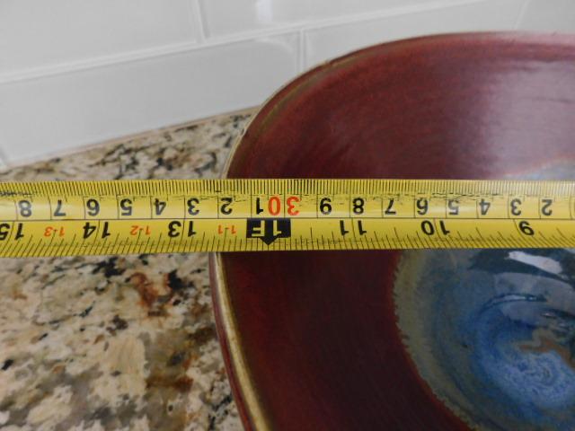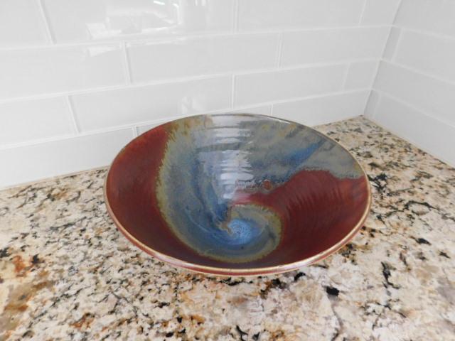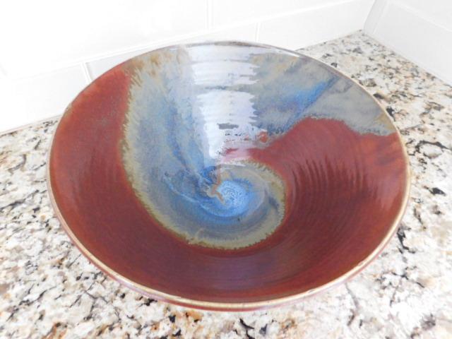 Swirl Glaze Pottery Fruit Bowl Marked 13"