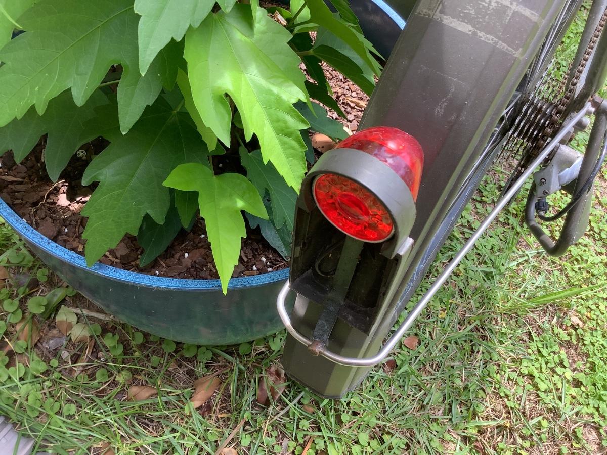 Front and rear lights powered by axle-mounted dynamo