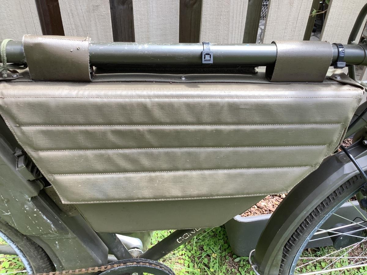 Highly collectible Swiss Military Bicycle specially adapted to meet the needs of armed forces. In use since the early 20th century in many armies throughout the world, bicycles allow swift, silent movement and increased mobility on the battlefield. This beauty was built between 1993-1995. Created to be used by couriers to deliver messages, ammo and documents to front-line troops.