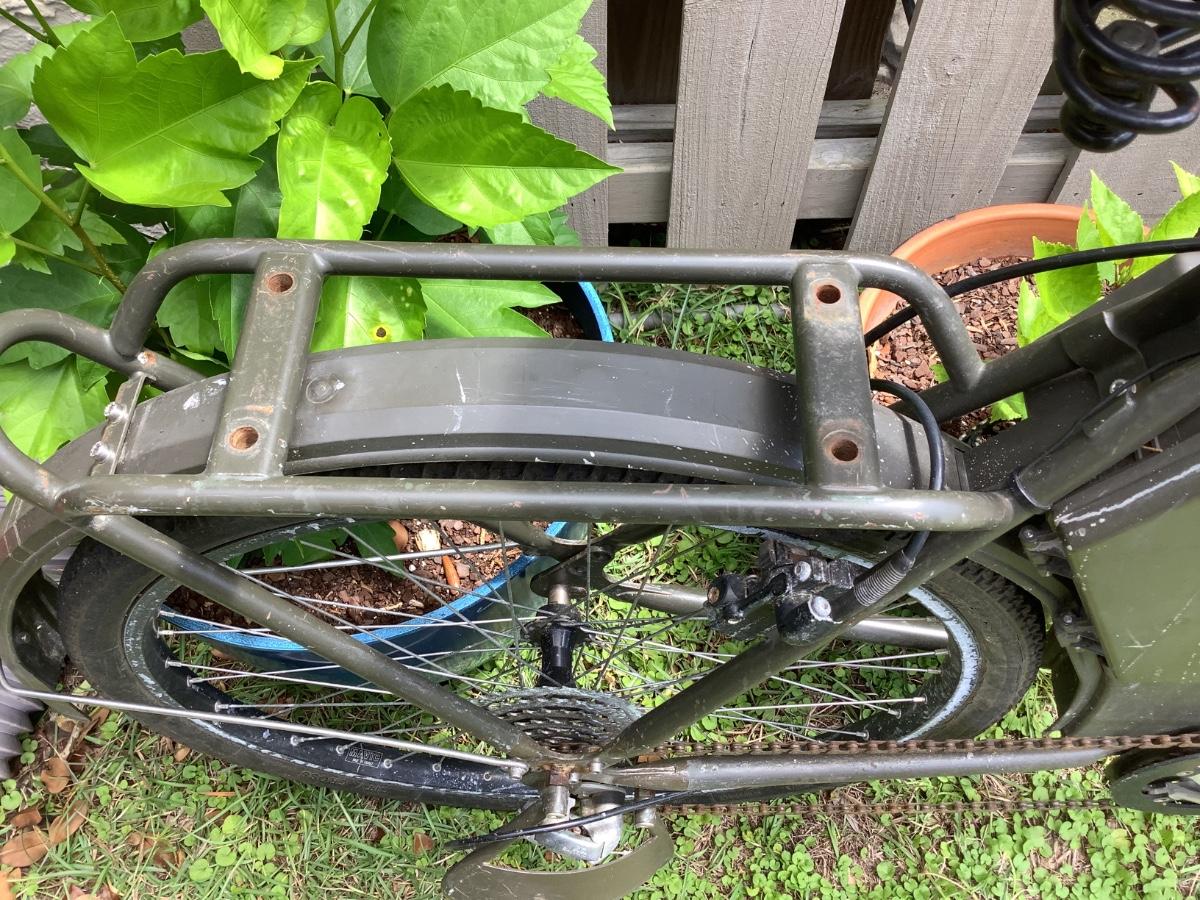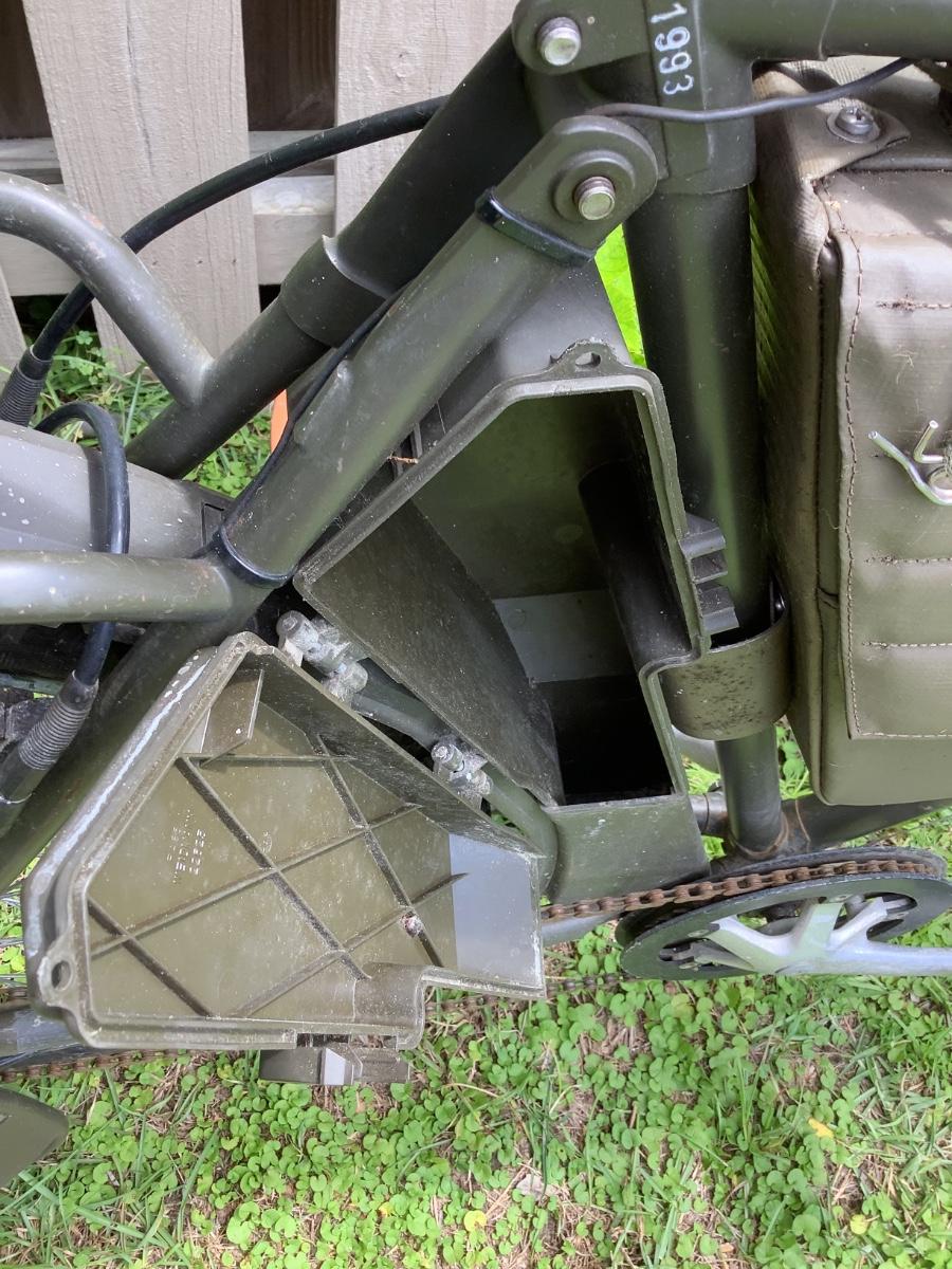 This Bicycle is a strong, sturdy 48 lbs. A few are still used at the Company 17 (Fallschirmaufklrer Kompanie 17) Special Forces base and Paratrooper school at Locarno-Magadino military airport in southern Switzerland. They're currently ridden by cadet officers, sergeant majors, quartermasters, cooks and guards, in addition to being used for physical training and movement between the barracks and firing range.