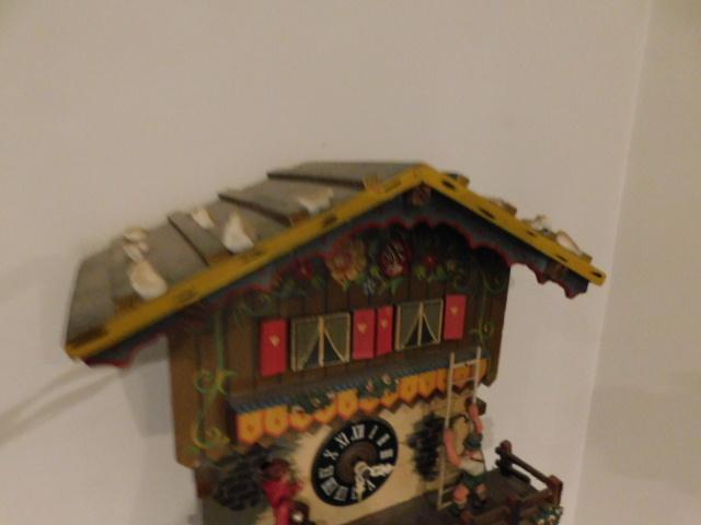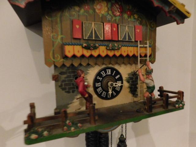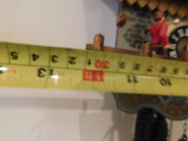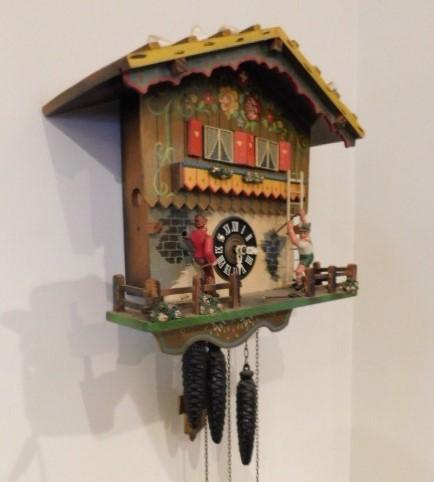 Swiss Cuckoo Clock 12" x 12" working condition unknown. Small repair needed to the pitchfork. Piece is with clock.