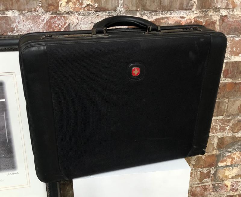 With a combination lock here is an attractive briefcase from Swiss Gear offered as is since there is damage to one of the bottom corners(pictured)...otherwise nice shape...with normal use...
