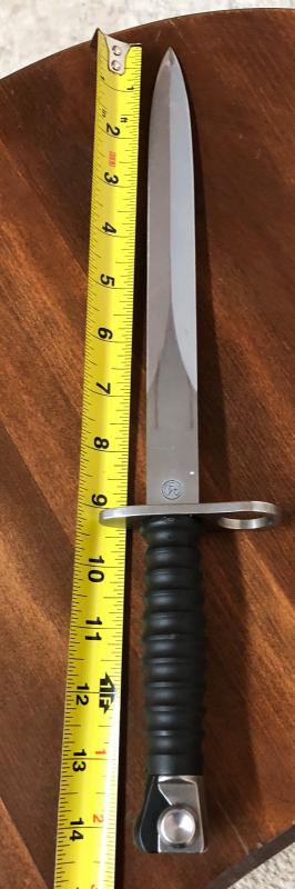 Old Swiss Military bayonet made by Sig Sauer, 9 1/2" blade 14 1/2" blade. If you require shipping please be aware that the cost of shipping may be more than what the item cost. All items ship from zip code 84109, you can go to USPS.com for estimates of cost. Your bid constitutes acceptance of the terms, you are also agreeing to pay for and pick up items in the stated times.