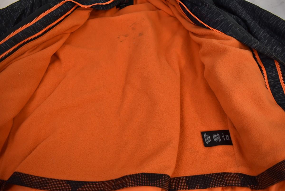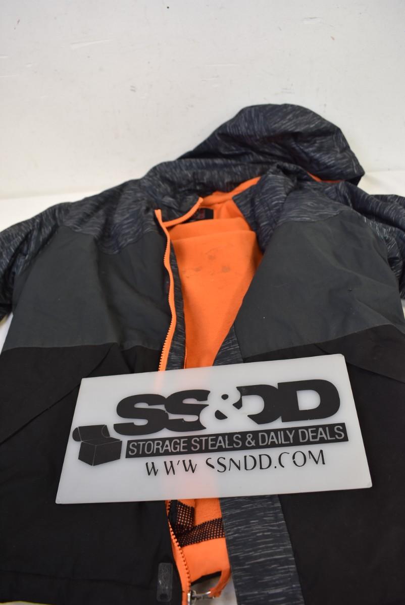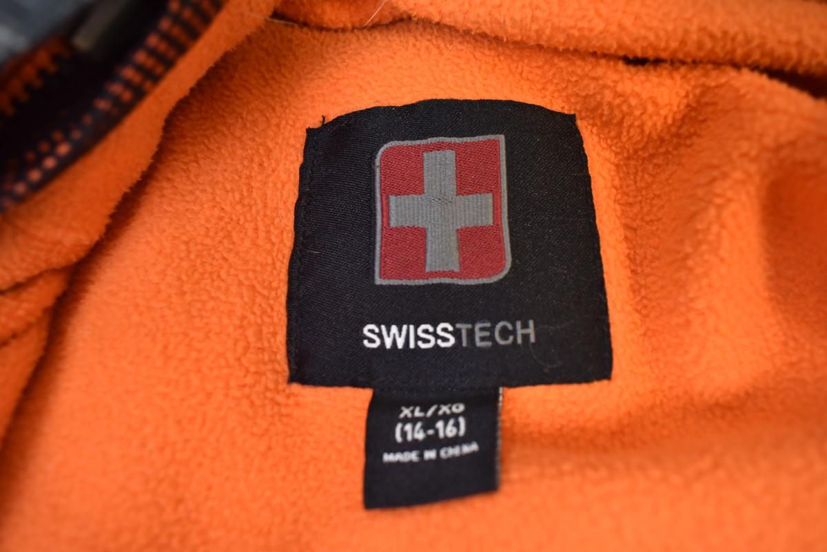 Swiss Tech Coat: XL 14-16 Size, Gray Exterior with Orange Inner Tears on Armpits