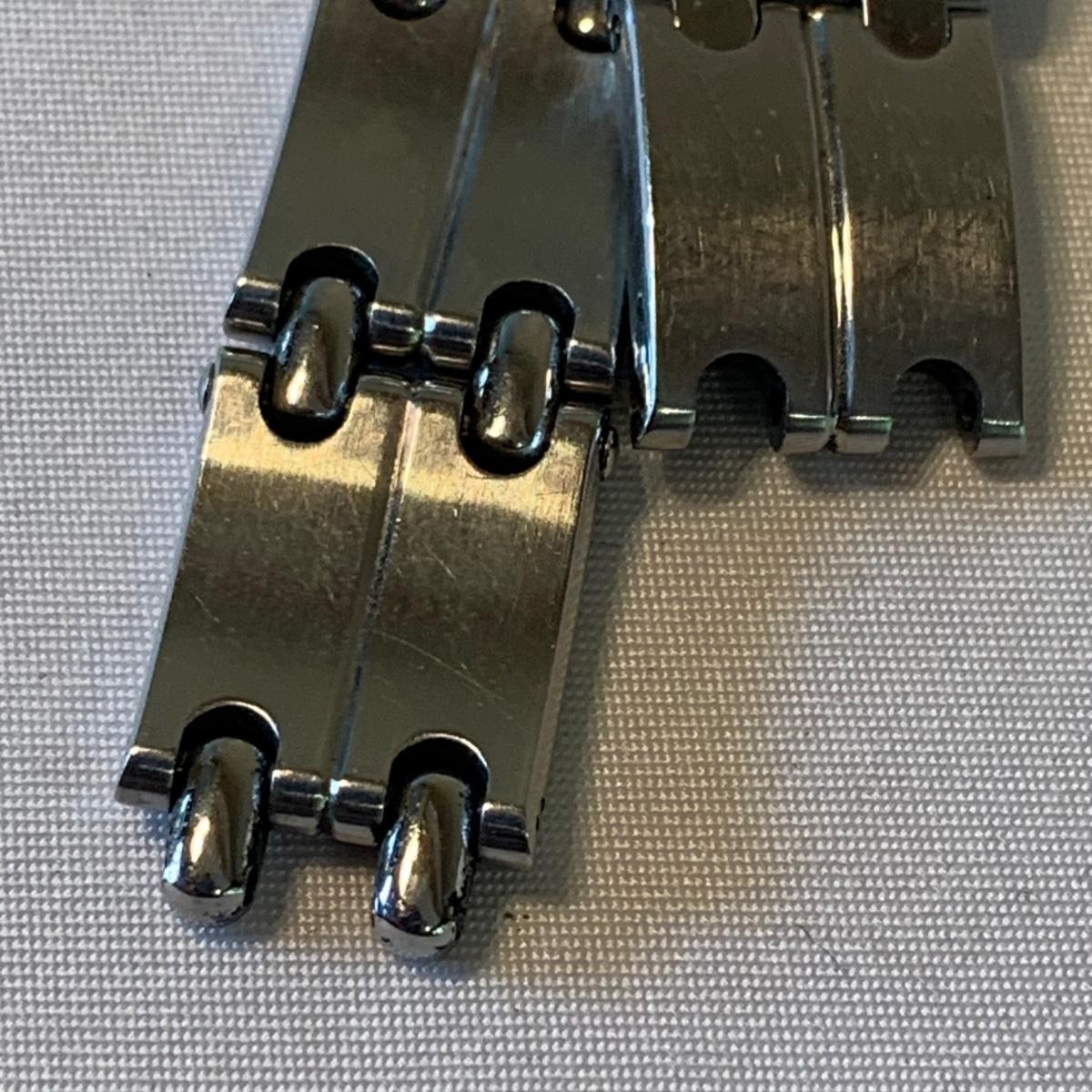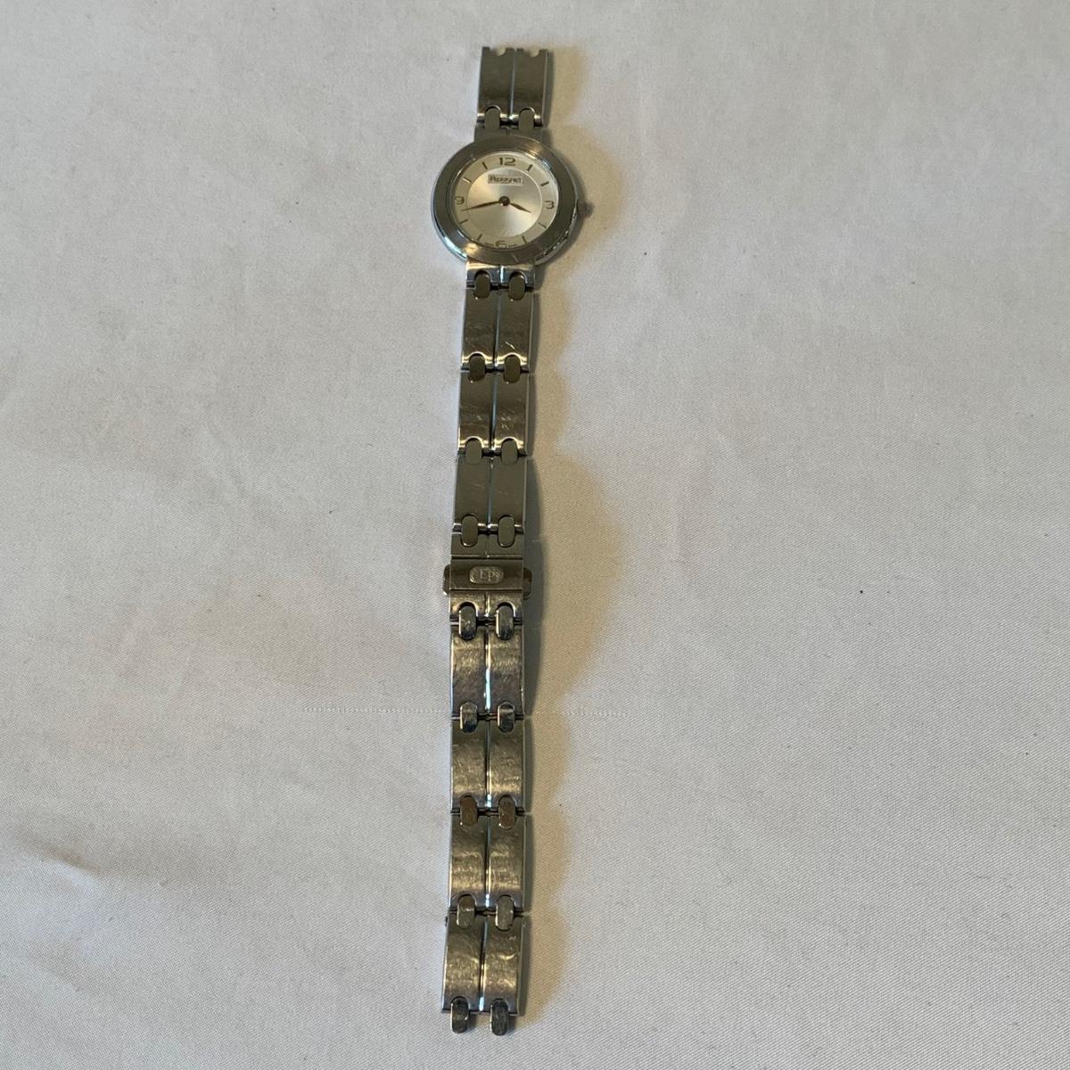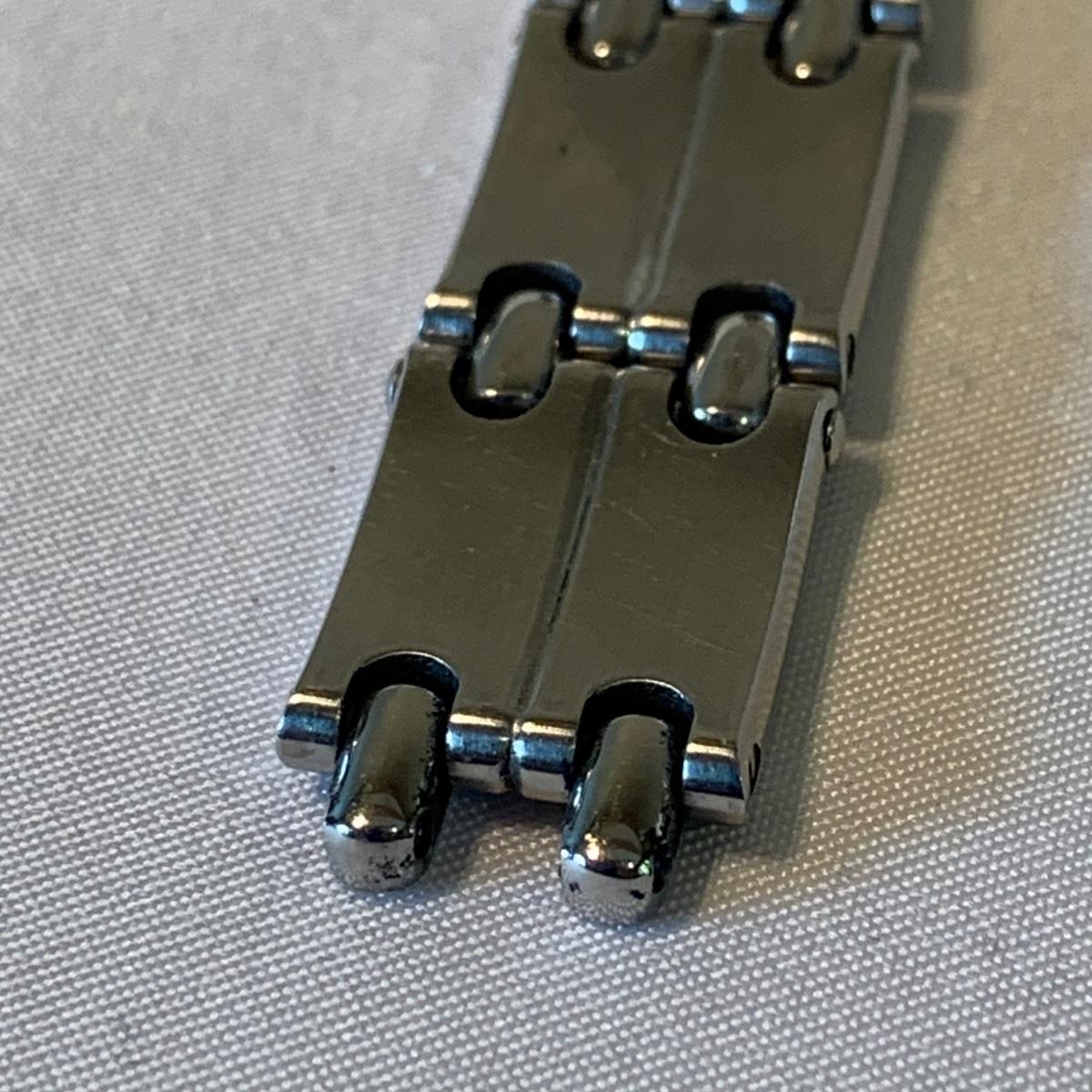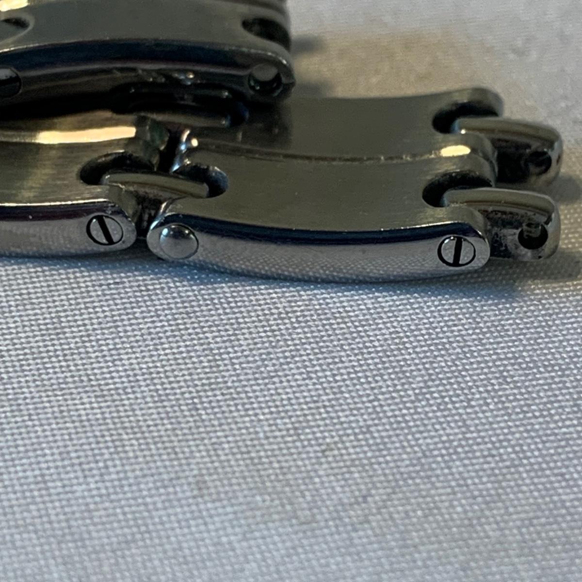 Swiss-made Pequignet stainless steel watch with sapphire glass. Watch is about 7” long. It needs a small repair to hold the band together. It is not currently ticking and likely needs a new battery.