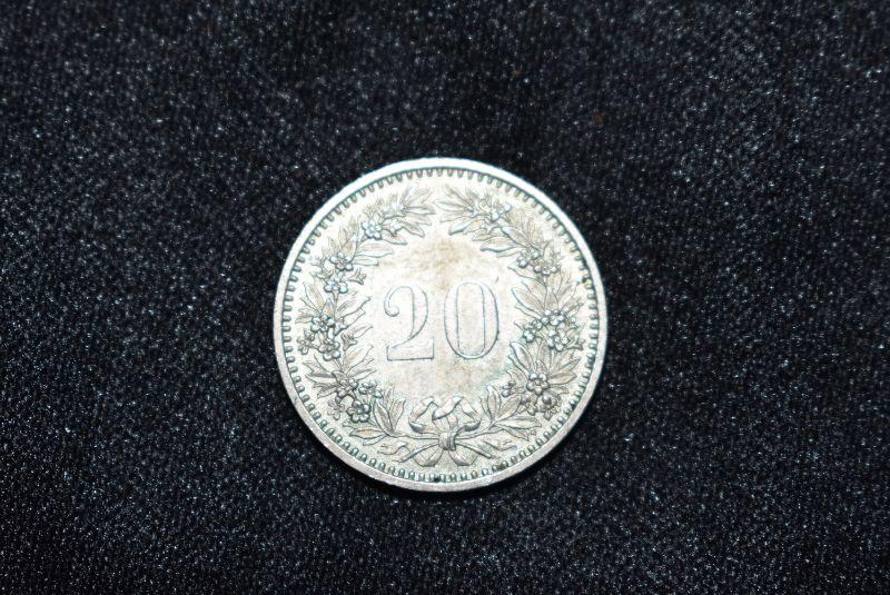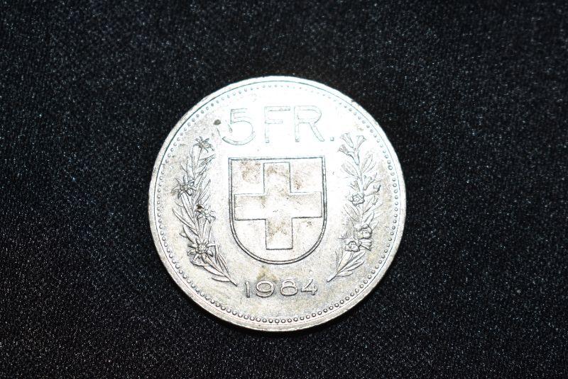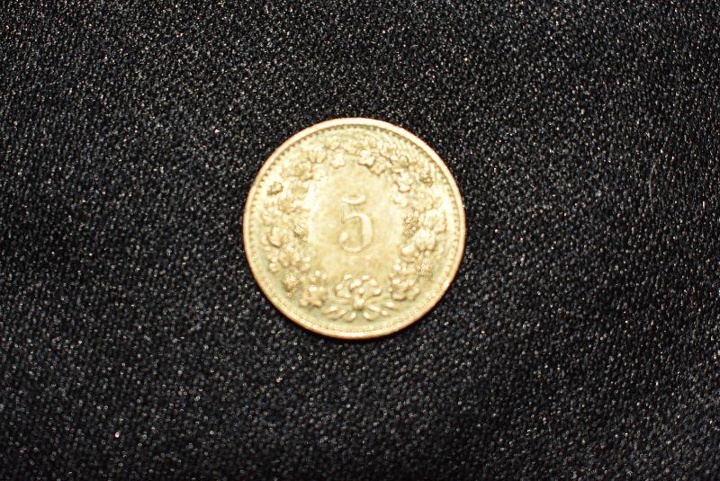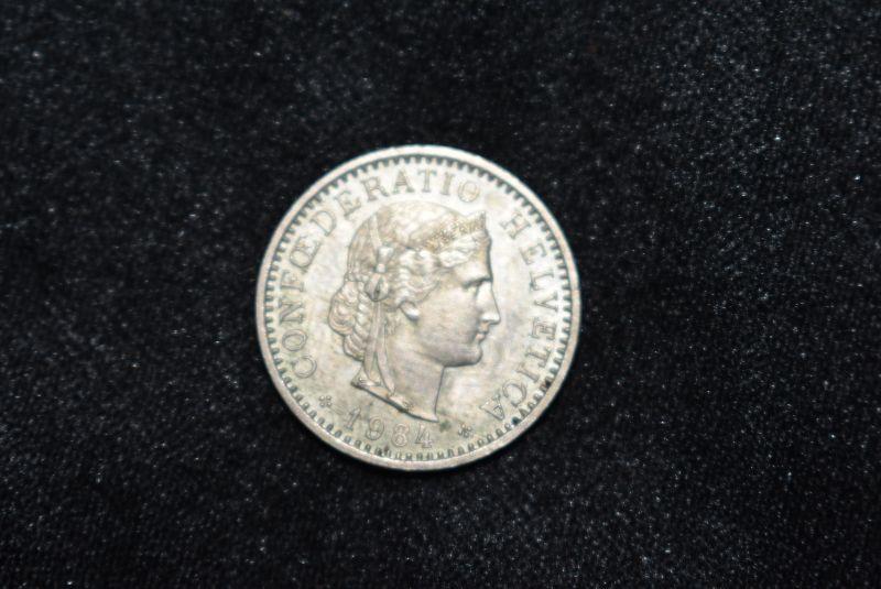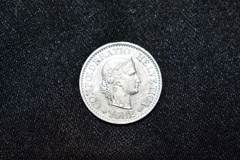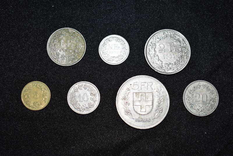 1970 Switzerland 1 Franc, 1979 Switzerland 1/2 Franc, 1981 Switzerland 2 Francs, 1982 Switzerland 5 Rappen, 1982 Switzerland 10 Rappens, 1984 Switzerland 5 Rappen, and 1984 Switzerland 20 Rappen